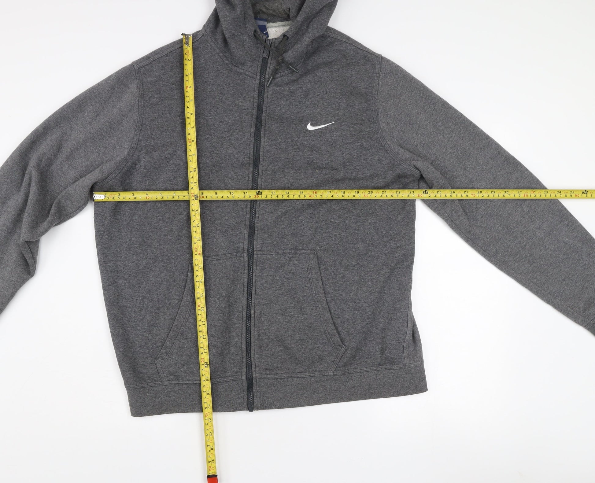 Nike Men's Grey Full Zip Hooded Jacket Size L Cotton Blend