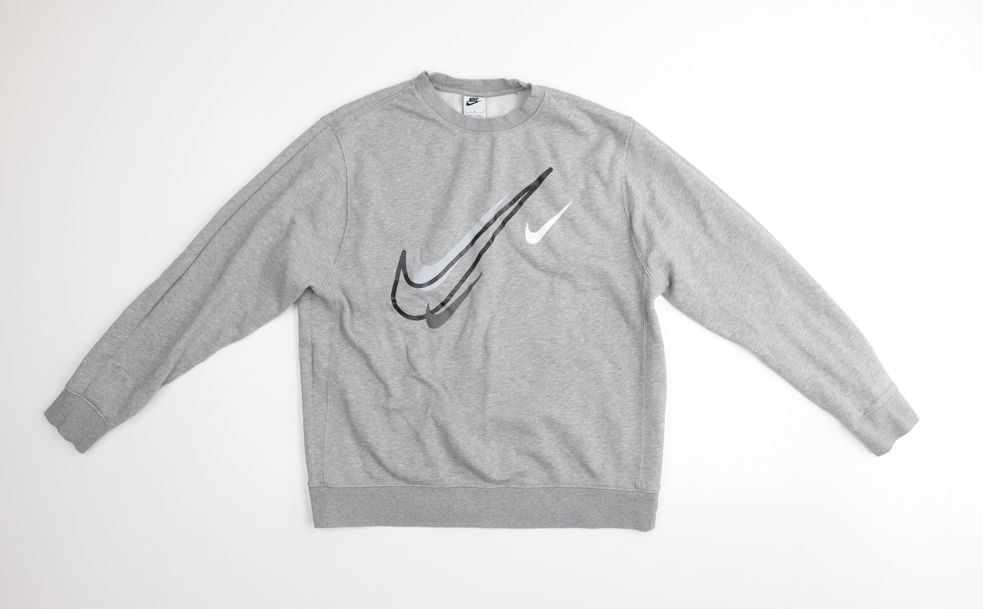 Nike Mens Grey Logo Pullover Sweatshirt L Regular Fit Fleece