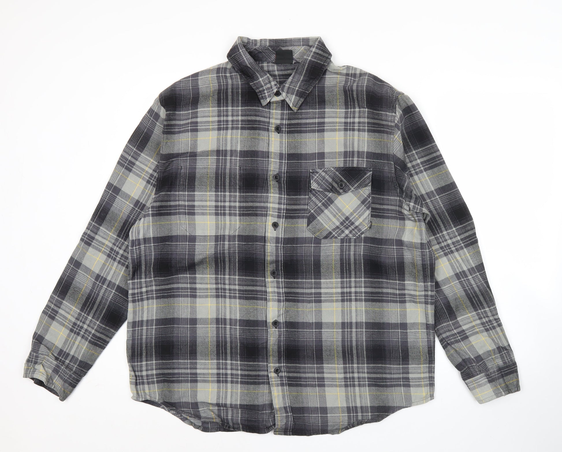 Nike Men's Grey Plaid Flannel Button-Up Shirt L Long Sleeve