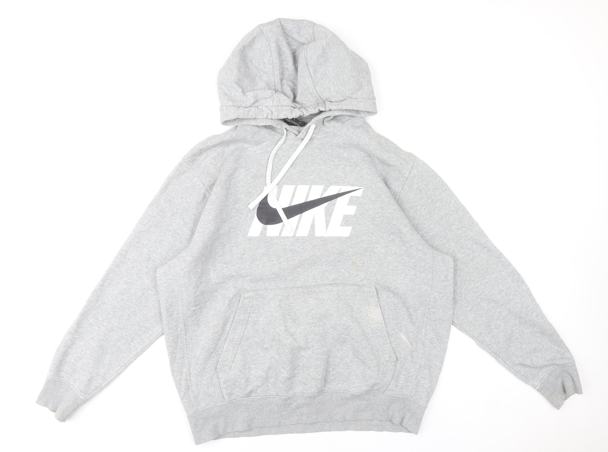 Nike Mens Grey Pullover Hoodie L Sports Graphic Fleece Sweatshirt