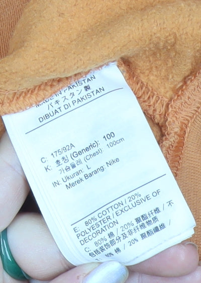 Nike Men's Orange Pullover Sweatshirt L Graphic Logo Sports Fleece