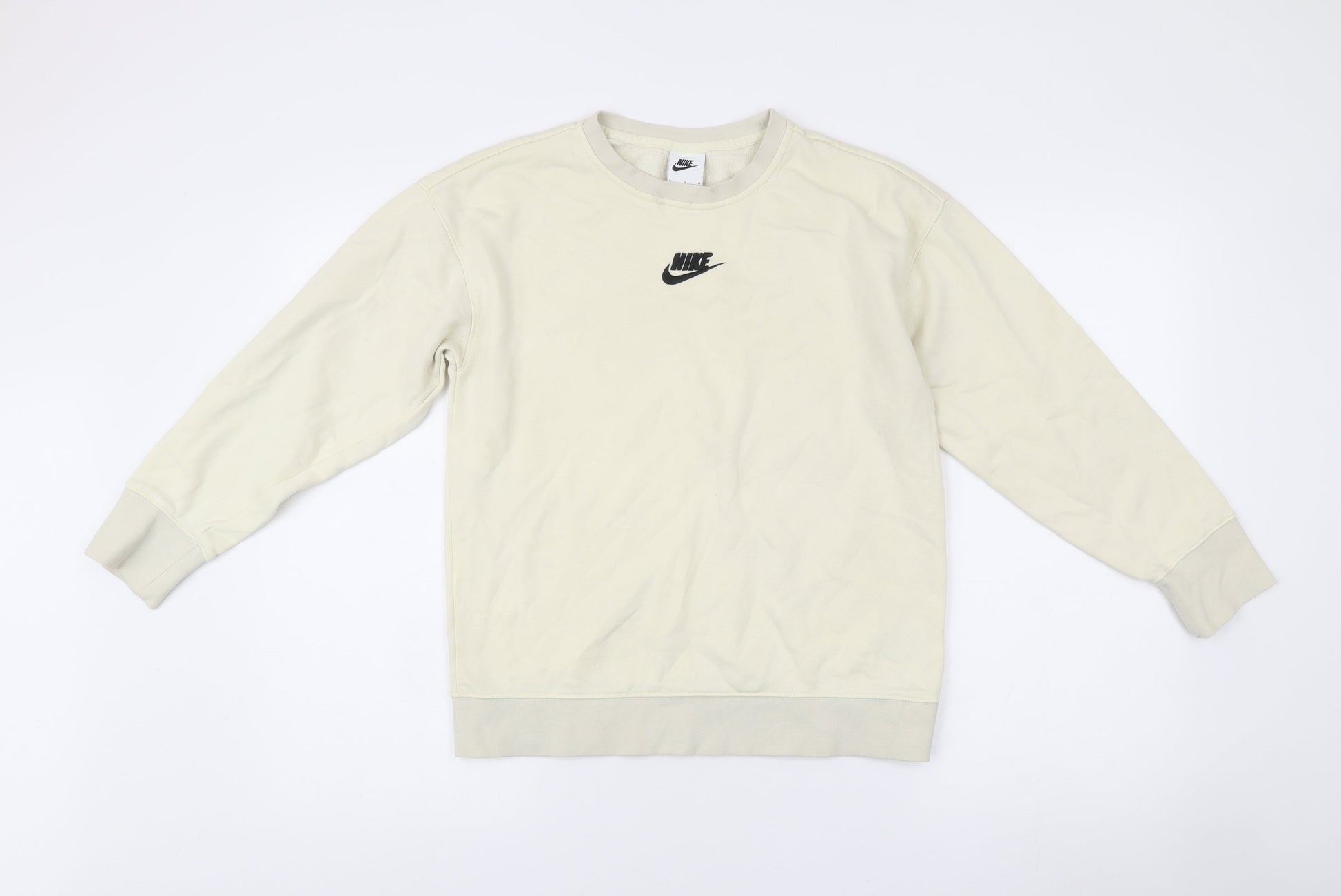 Nike Unisex Ivory L Pullover Sweatshirt Crew Neck Cotton Blend