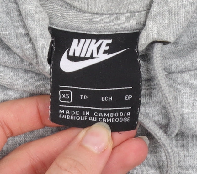 Nike Women Grey Pullover Hoodie XS Cotton Blend Casual Sweatshirt