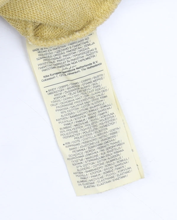 Nike Women’s Beige Cropped Pullover Hoodie L Embroidered Logo Cotton Blend