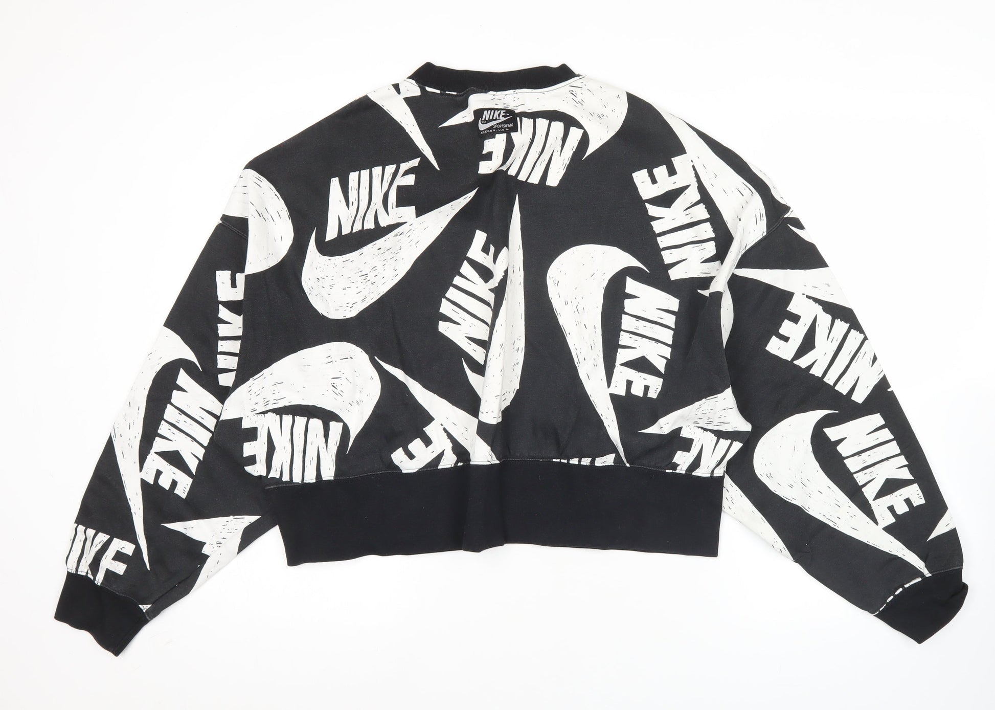 Nike Women’s Black Logo Print Sweatshirt L Oversized Pullover