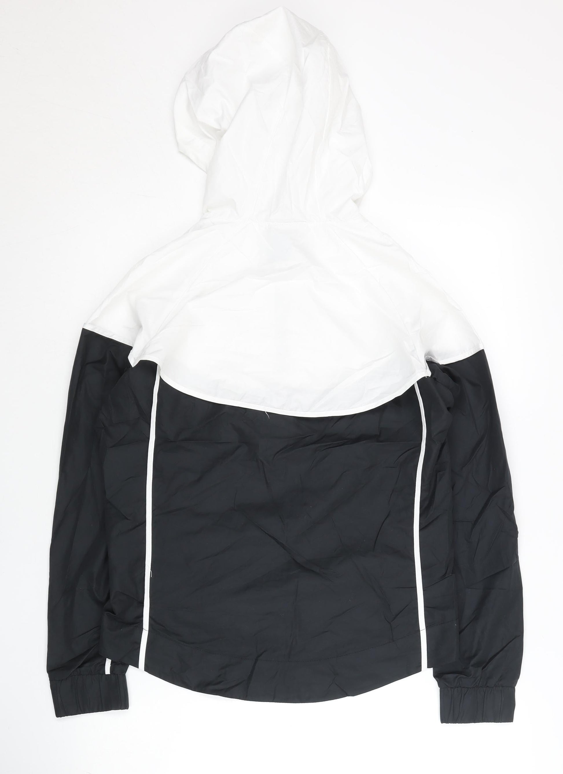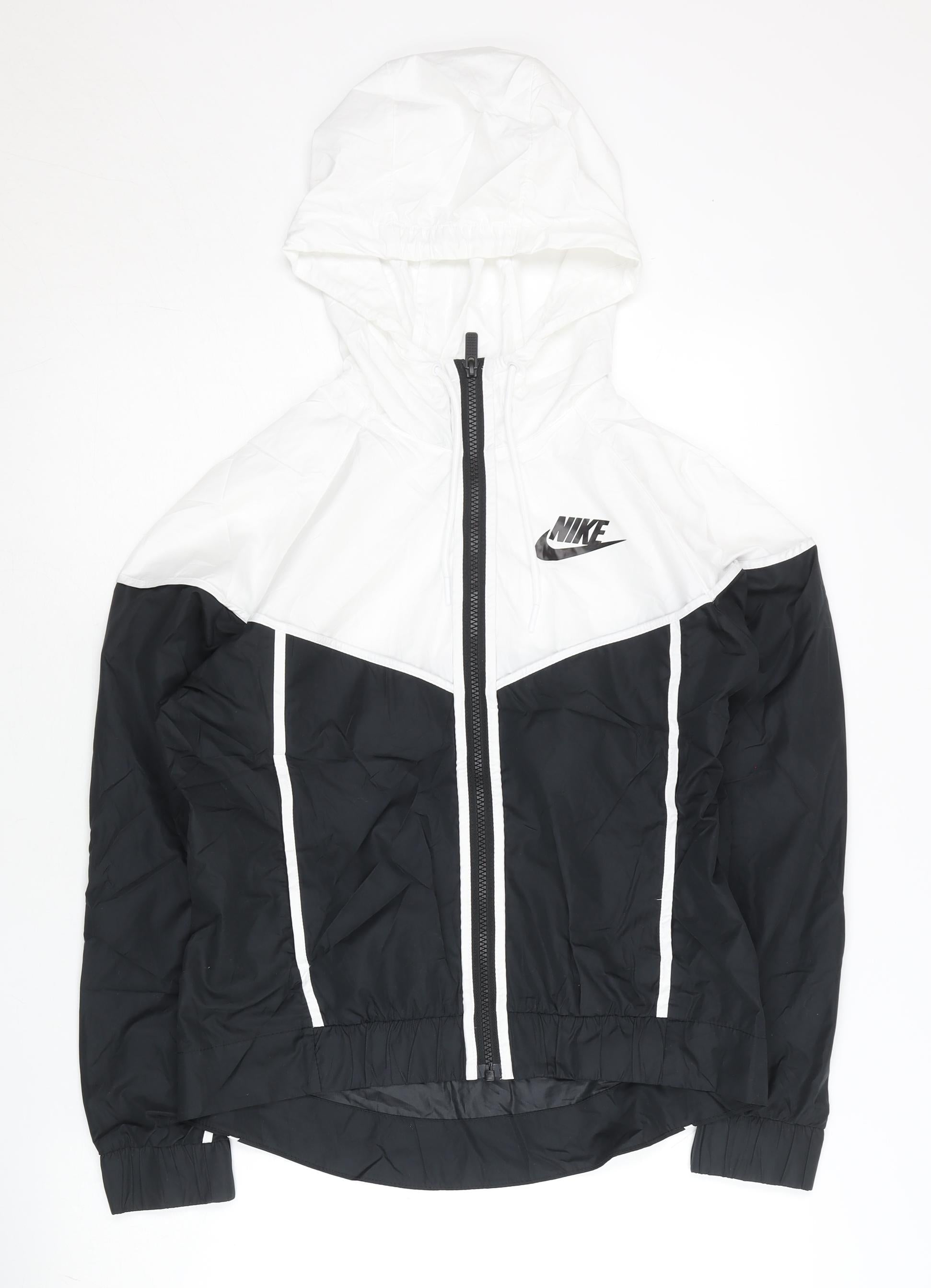 Nike Women’s Black White Windbreaker Jacket Size S Hooded Polyester