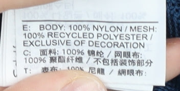 - Material Breakdown: 100% Nylon 100% Recycled Polyester