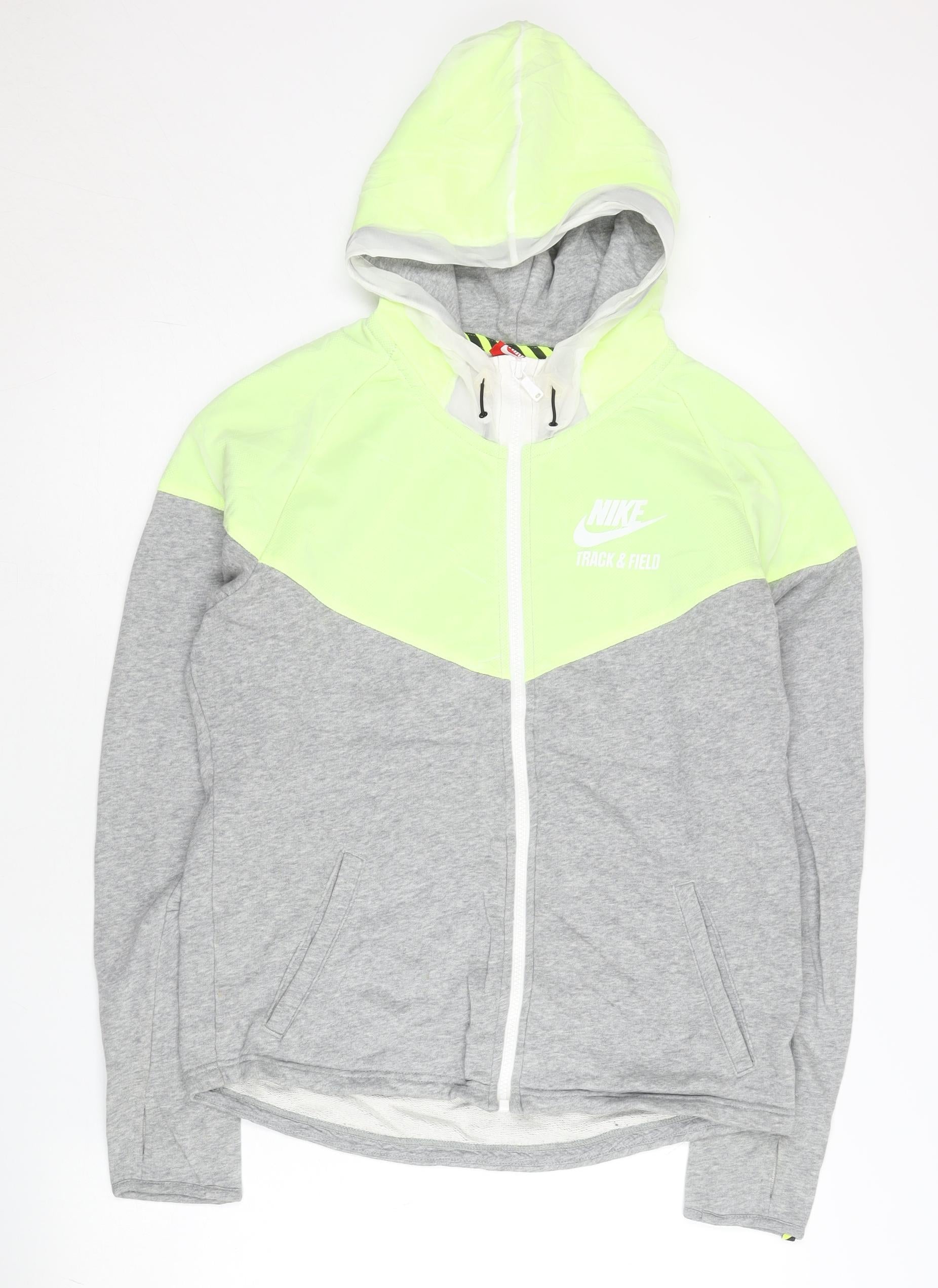 Nike Women’s Grey Green Track Jacket L Hooded Full Zip Sportswear