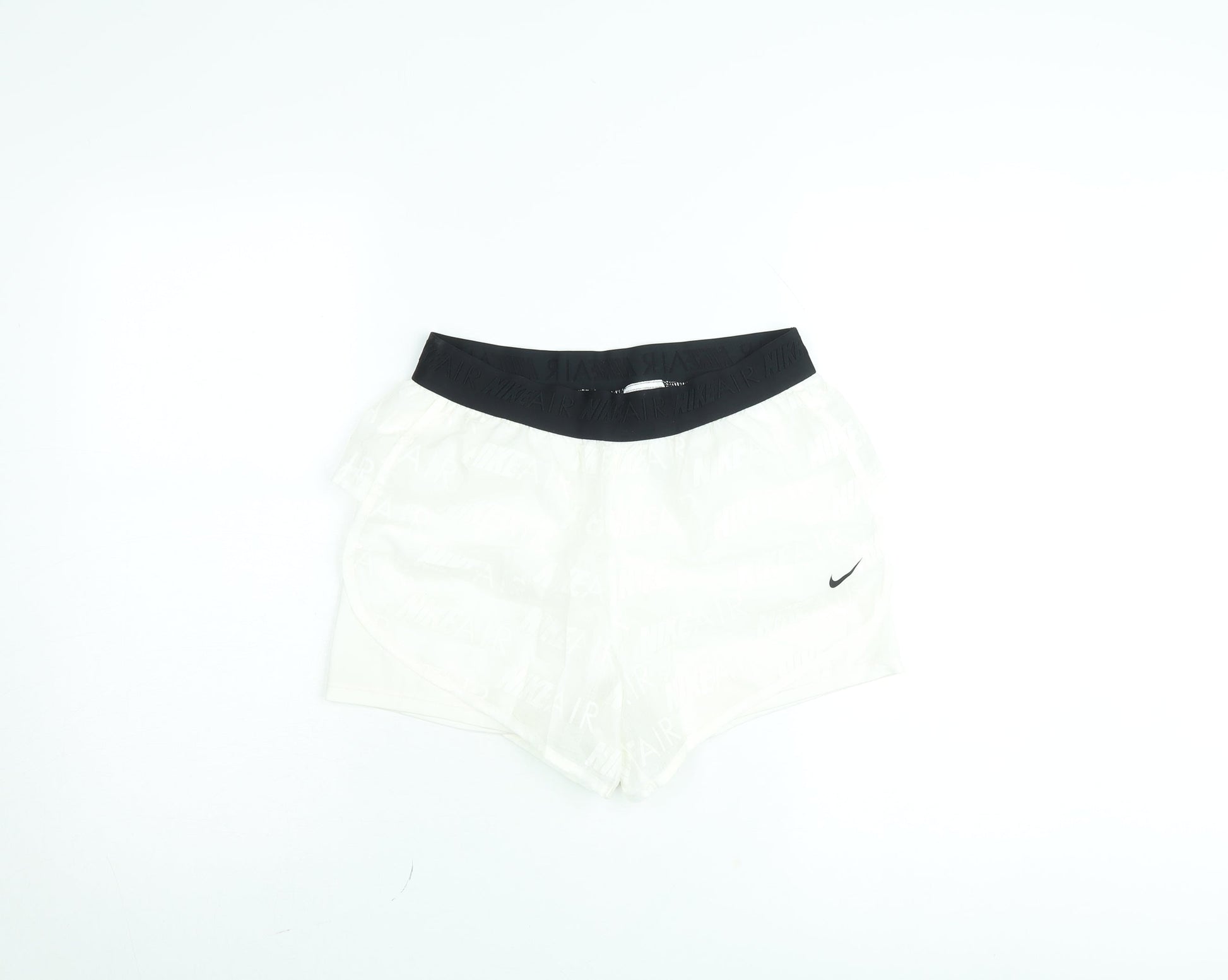 Nike Women White Running Shorts M Lightweight Polyester Gym