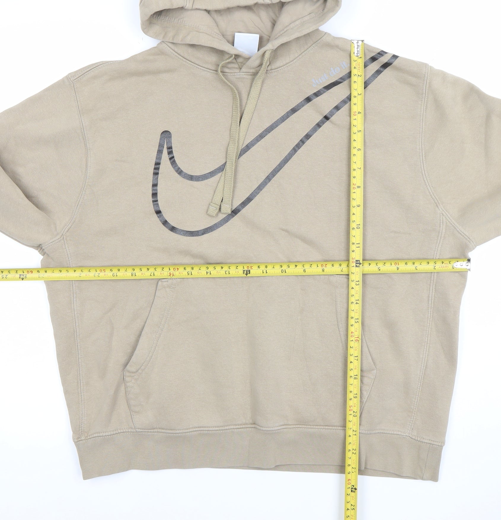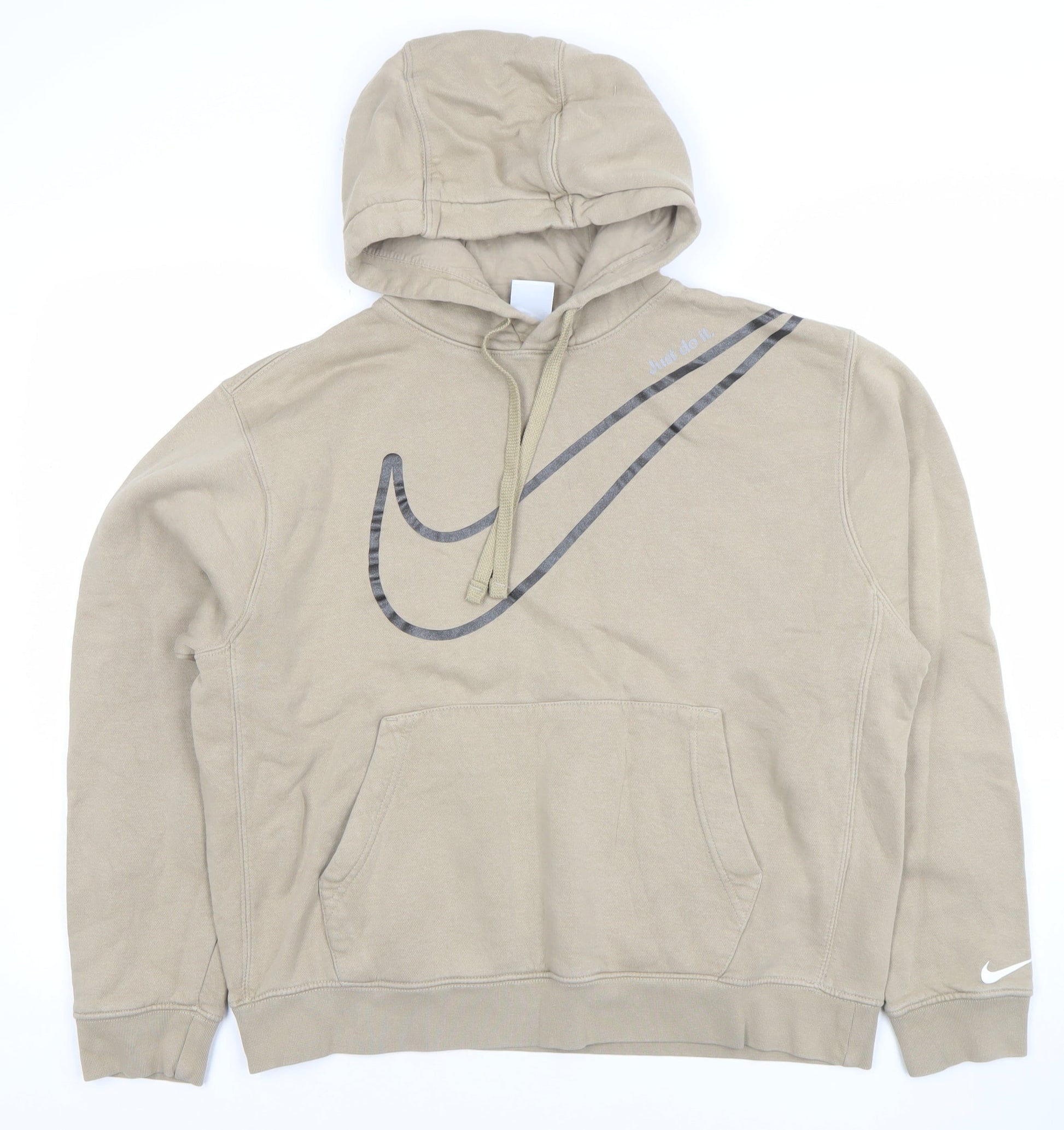 Nike Womens Beige Pullover Hoodie M Logo Print Cotton Blend