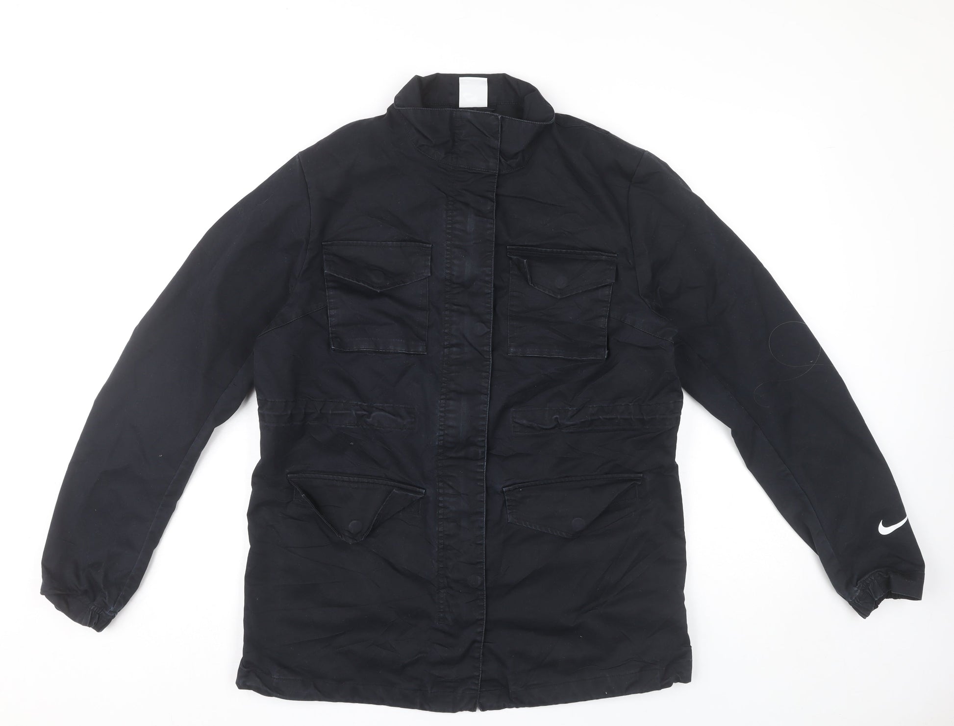 Nike Womens Black Military Jacket M Mid-Length Cotton Blend