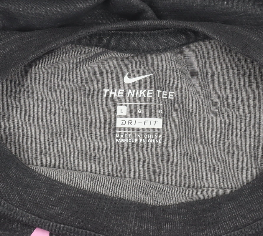 Nike Womens Black T-Shirt Large Dri-Fit Crew Neck Sports Tee