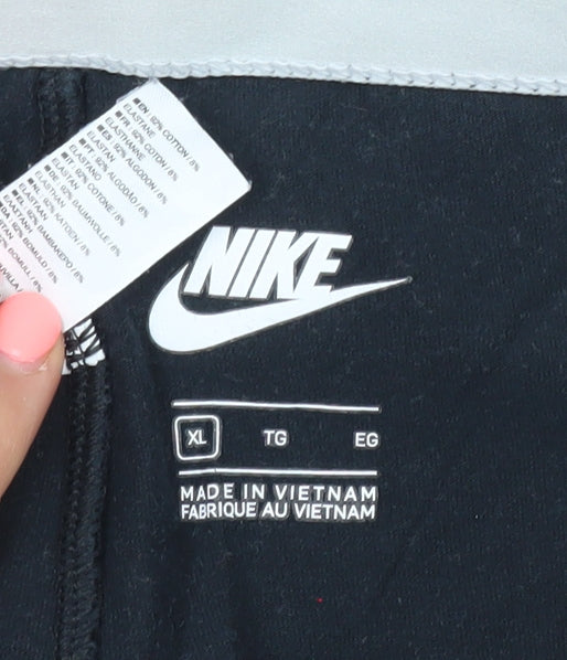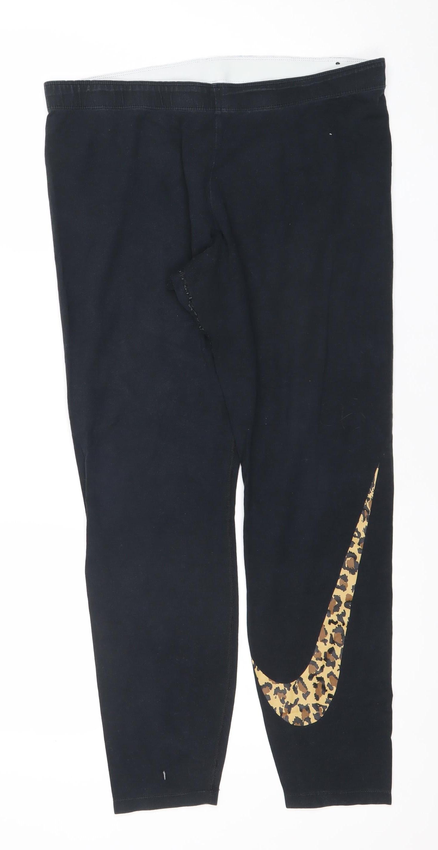 Nike Womens Black XL Leggings Leopard Print Logo Cotton Stretch Activewear