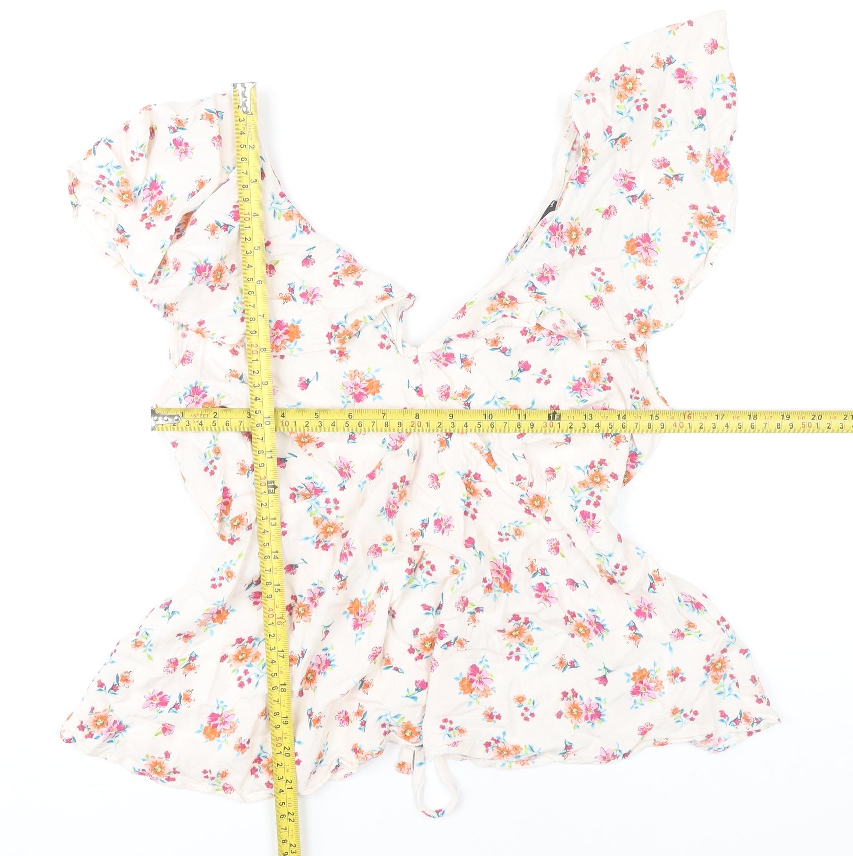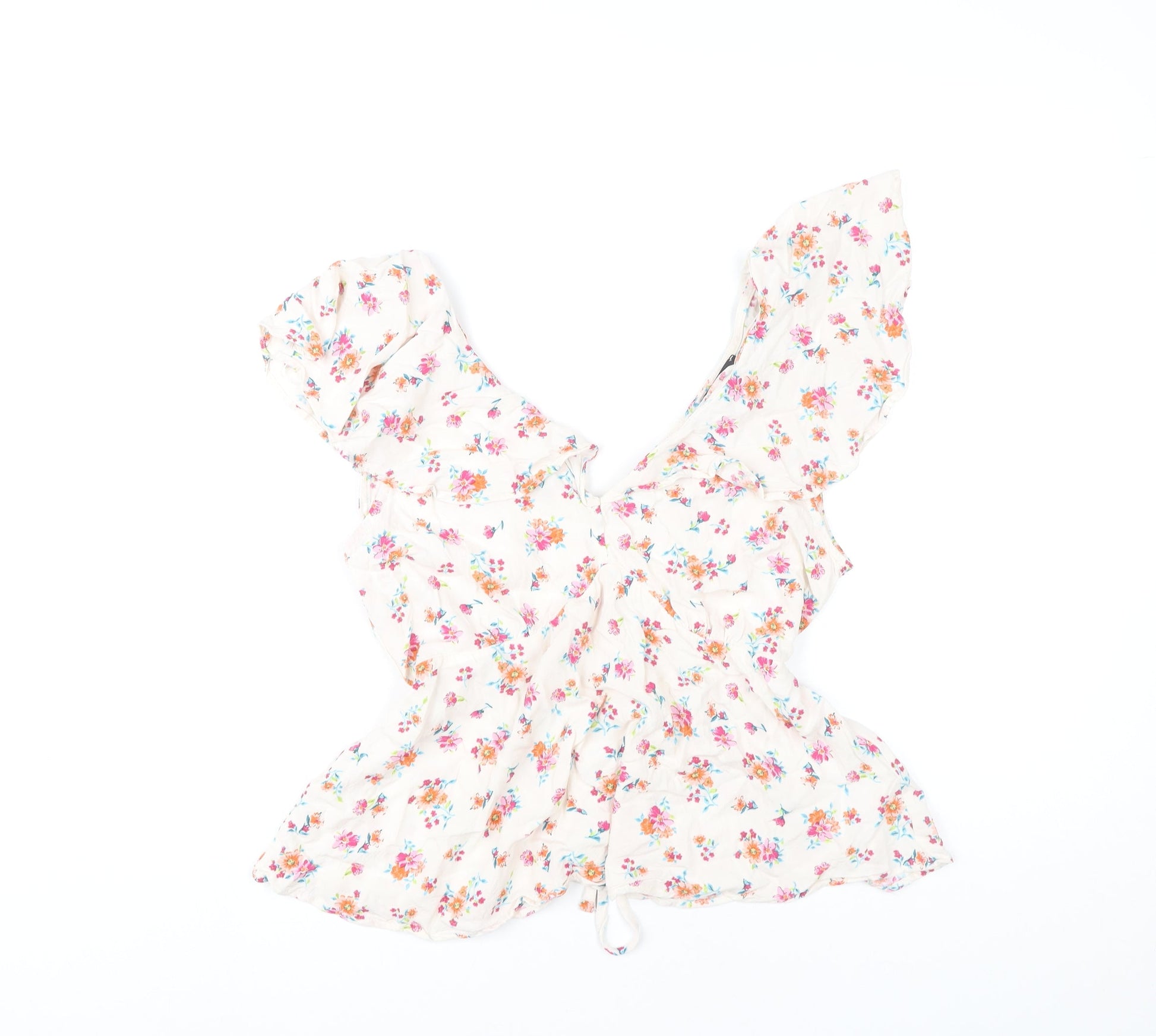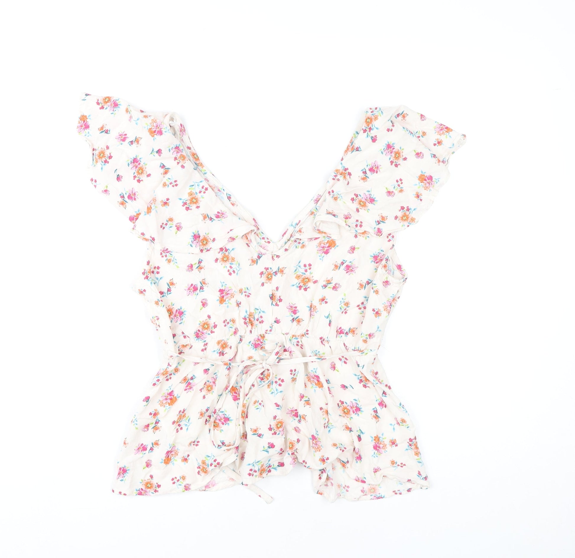 Nobody's Child Women's White Floral Wrap Blouse UK 12 Viscose Summer