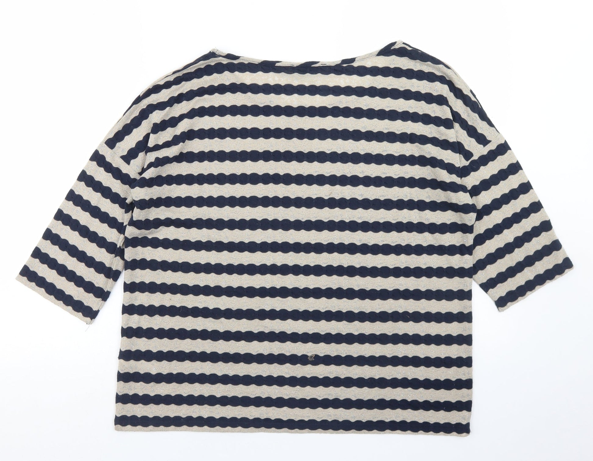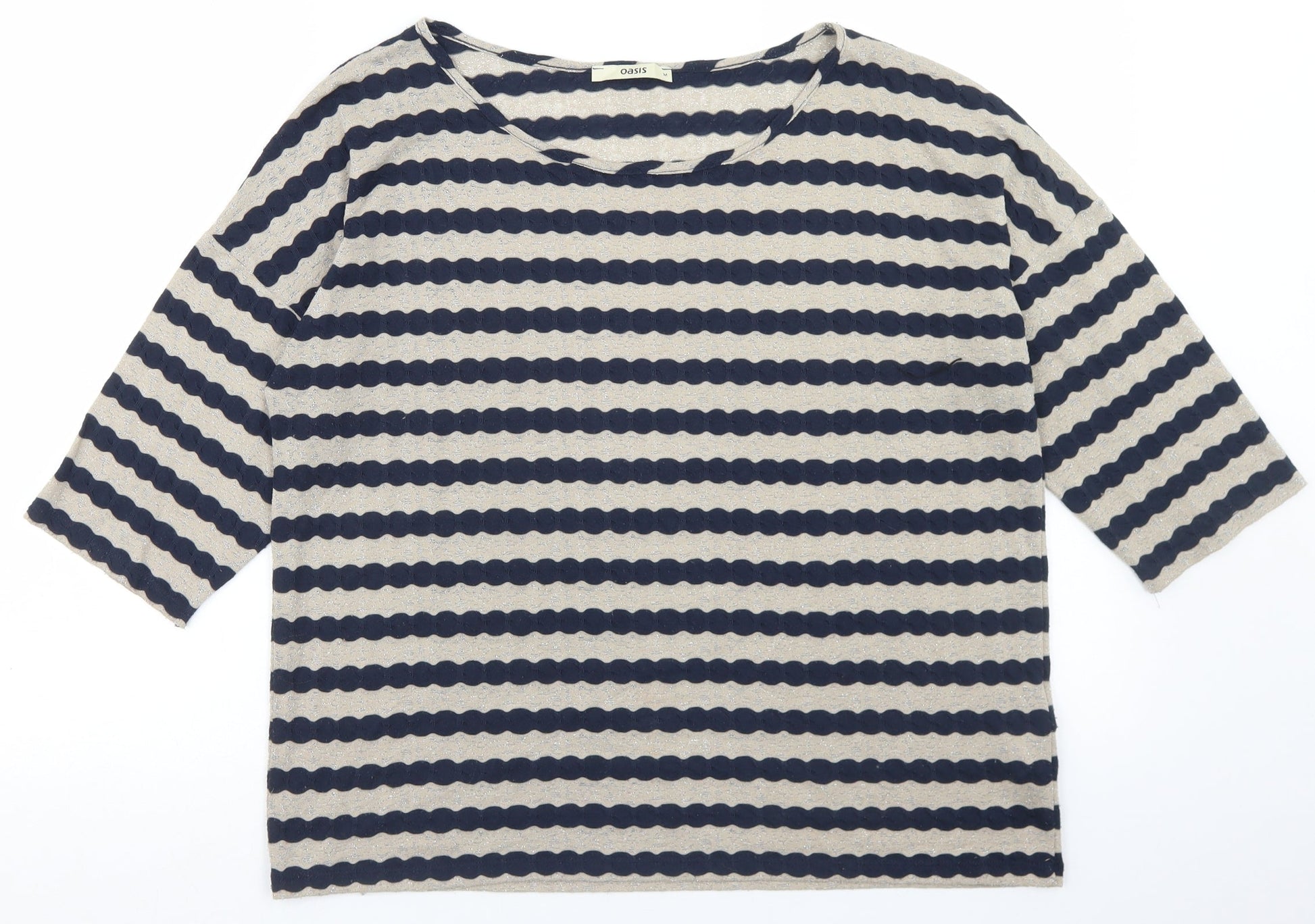 Oasis Womens Beige Striped Polyester Basic T-Shirt Size M Round Neck