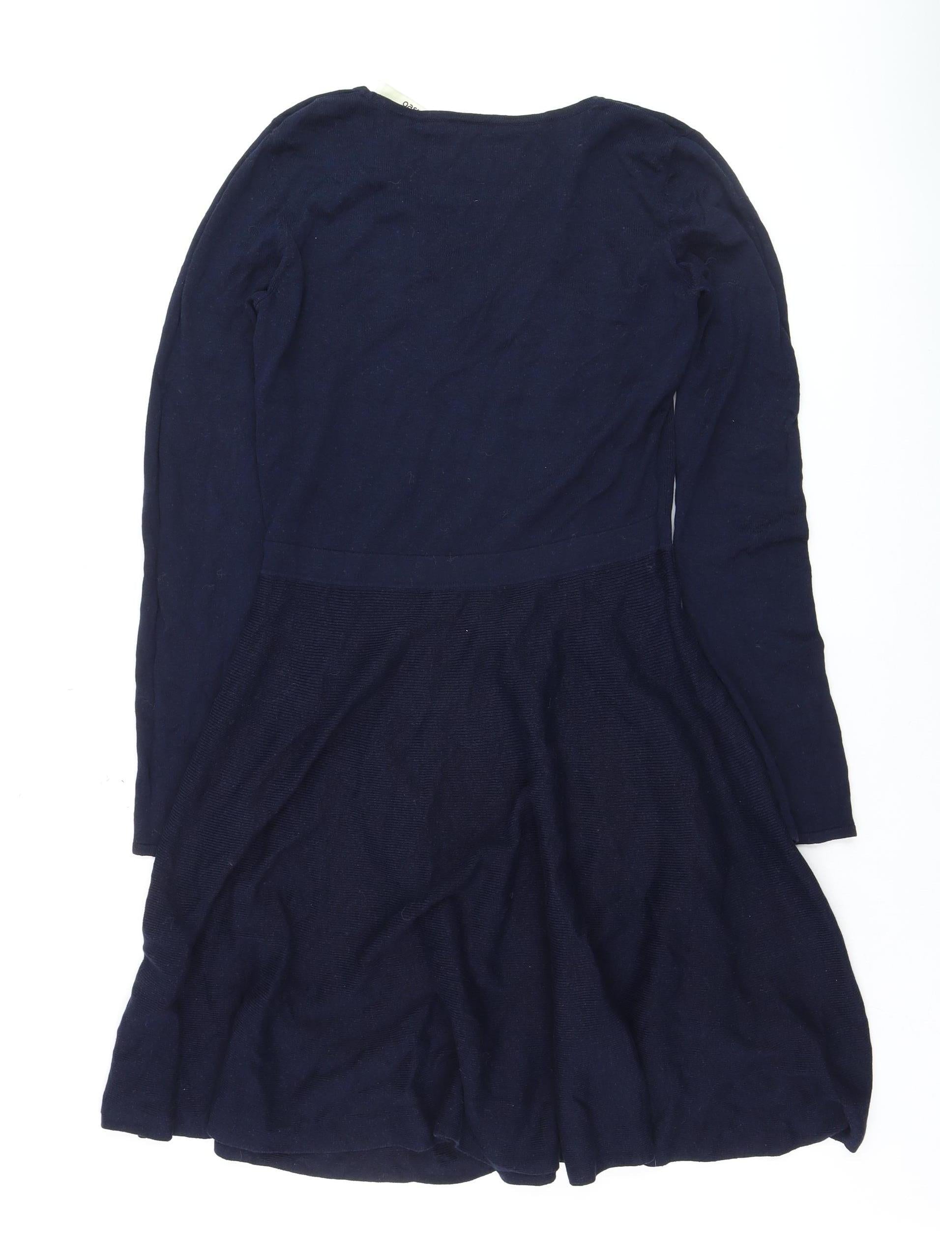 Oasis Women's Blue Knit Fit & Flare Dress Size M Long Sleeve V-Neck