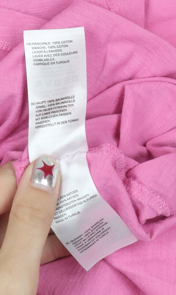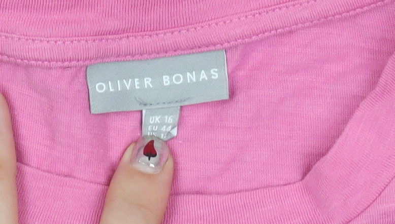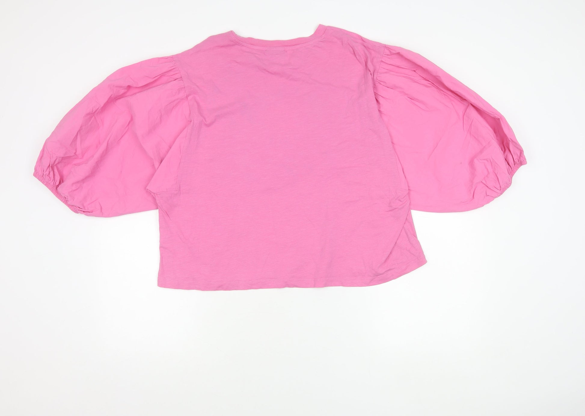Oliver Bonas Women Pink Cotton Balloon Sleeve T-Shirt UK 16