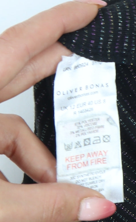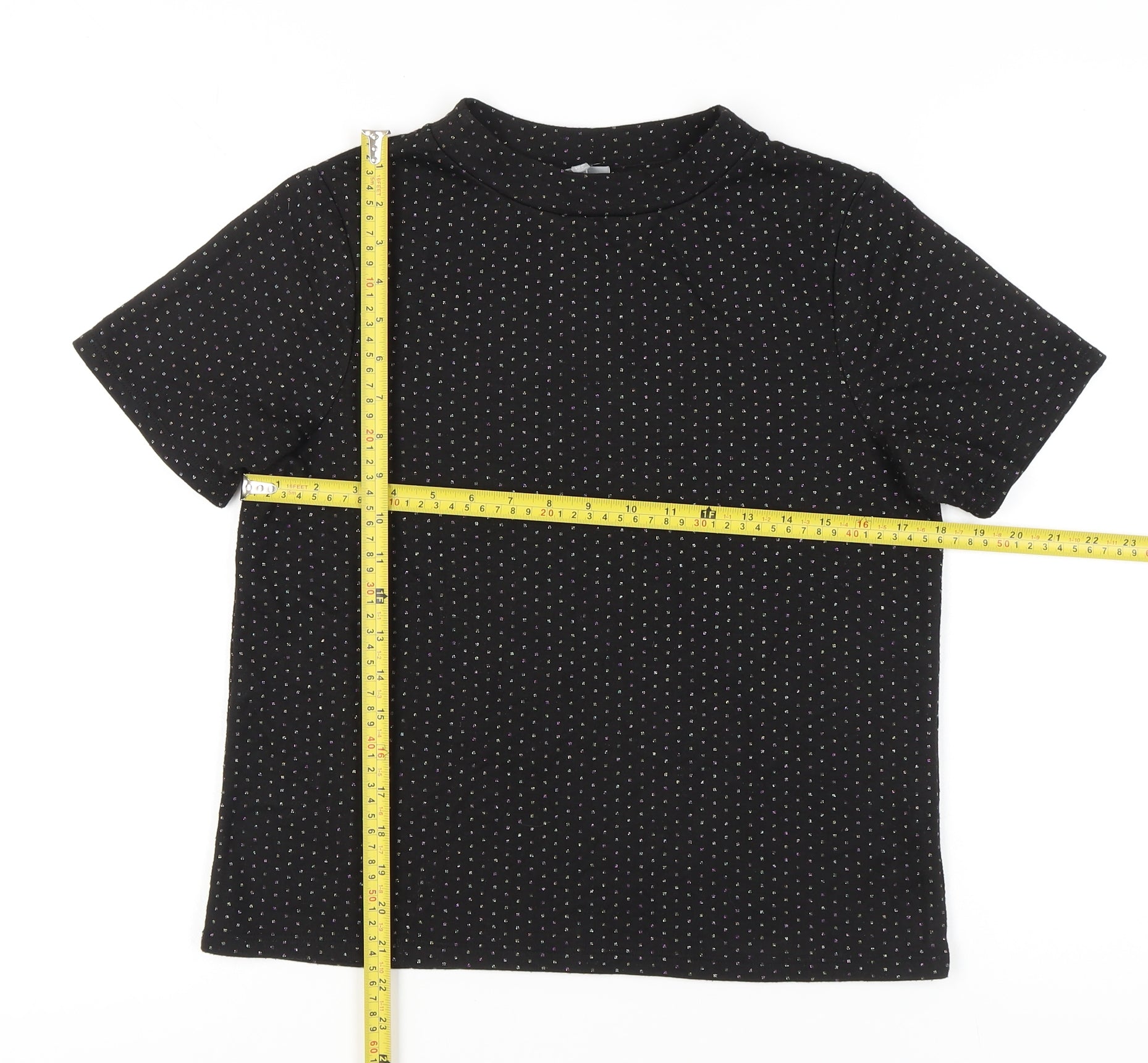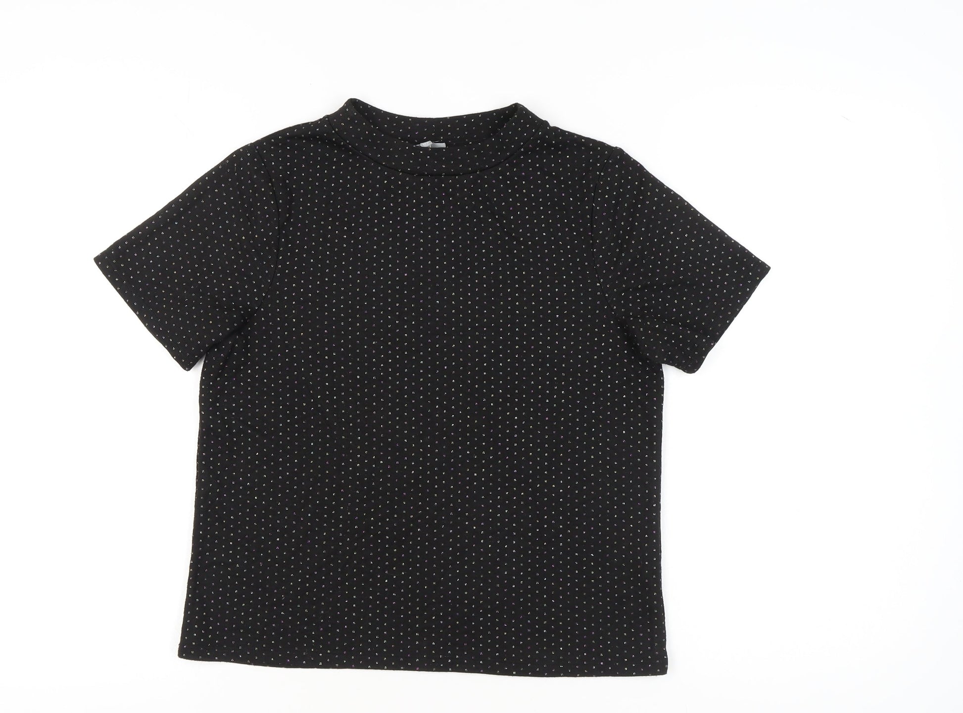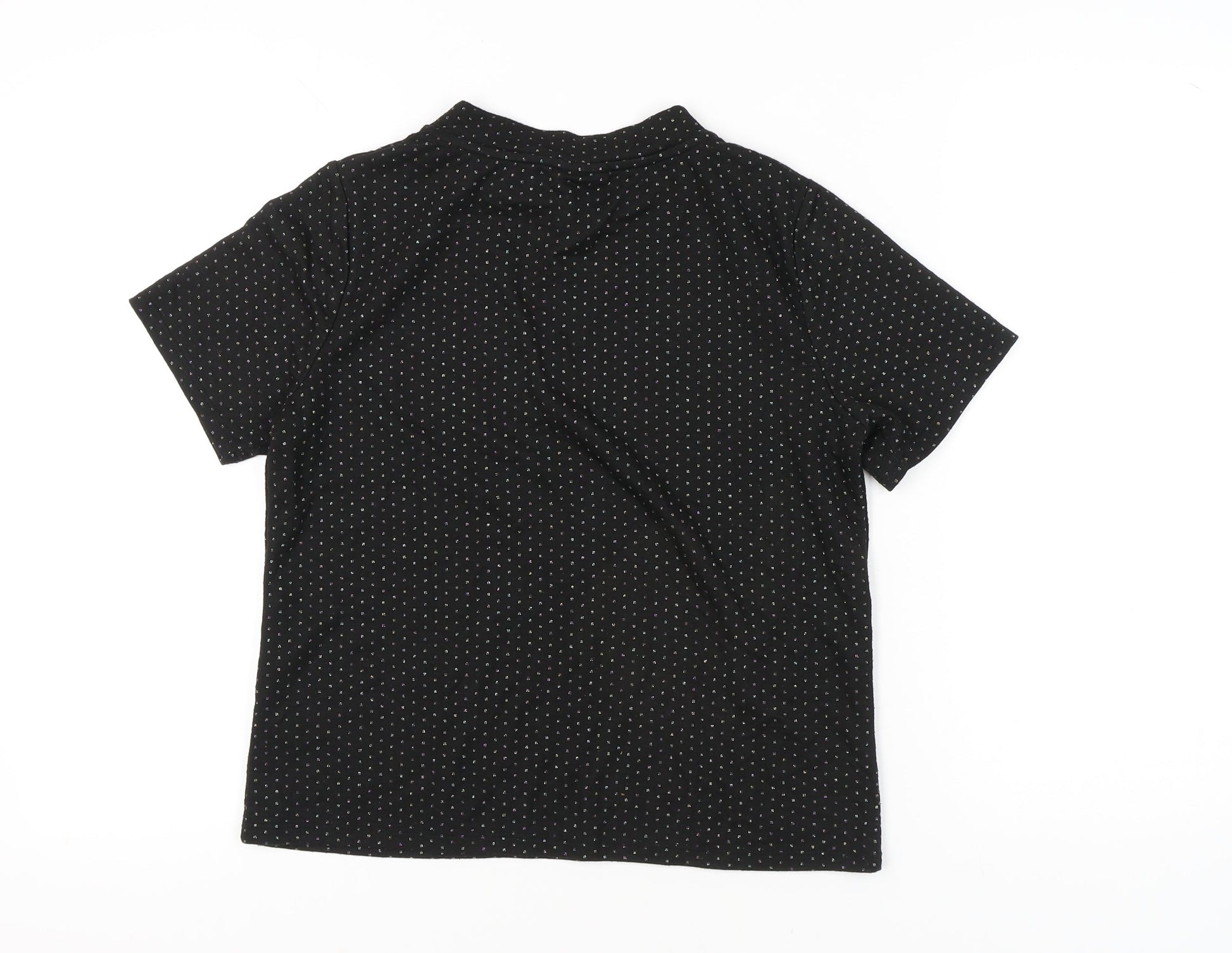 Oliver Bonas Women's Black Polka Dot Mock Neck T-Shirt UK 12 Regular Fit