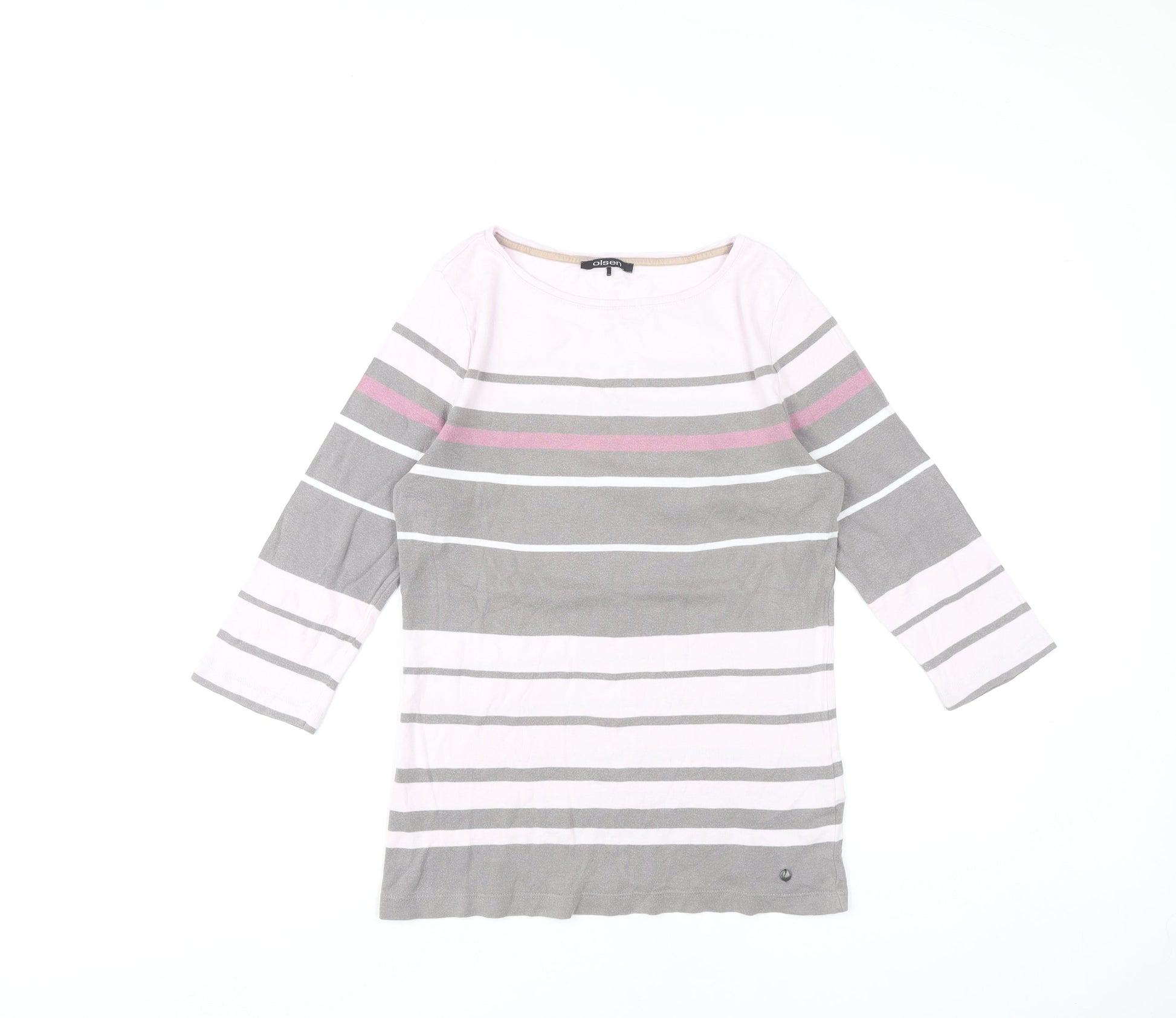Olsen Women’s Pink Grey White Striped 3/4 Sleeve Cotton T-Shirt Size 12