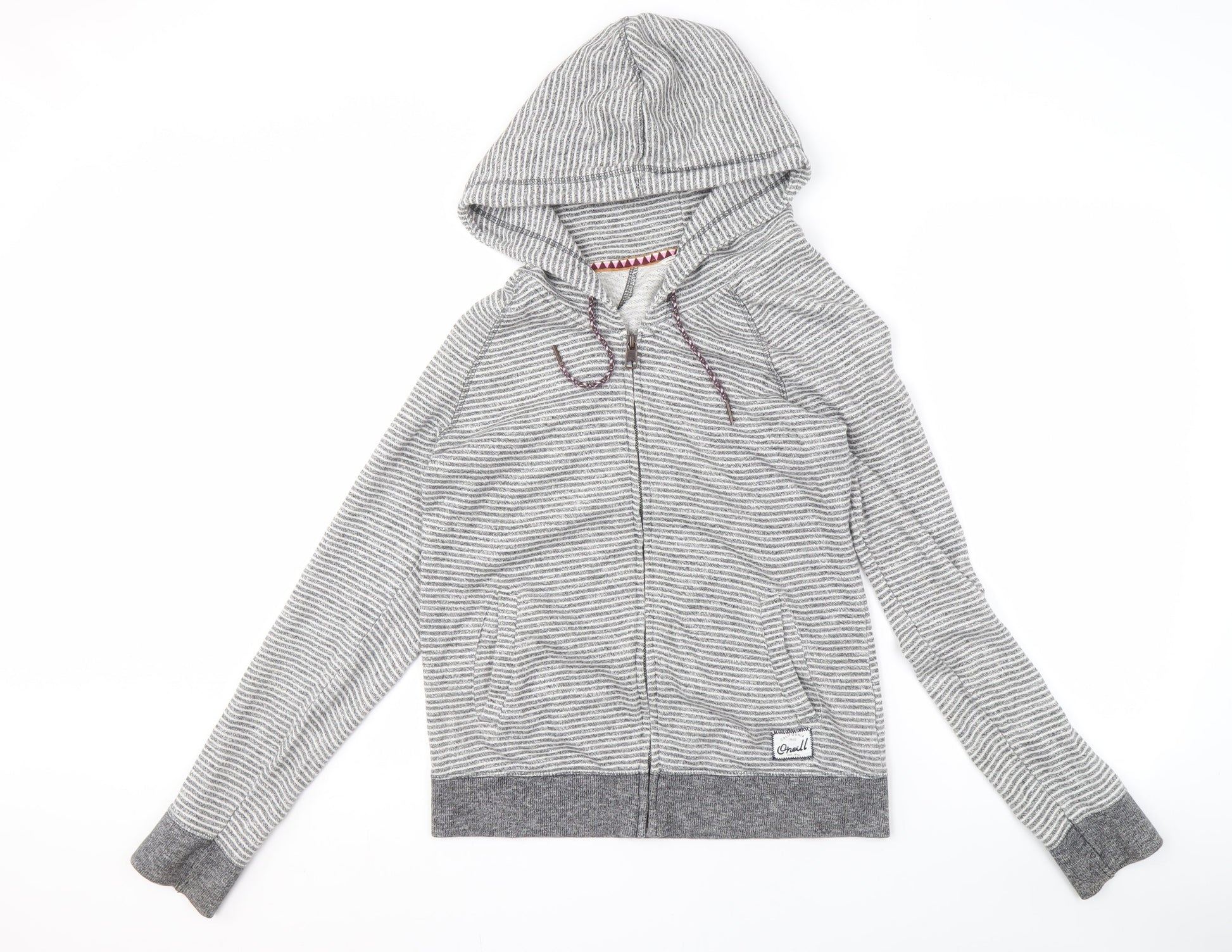 O'Neill Women's Grey Striped Full Zip Hoodie, Size 12
