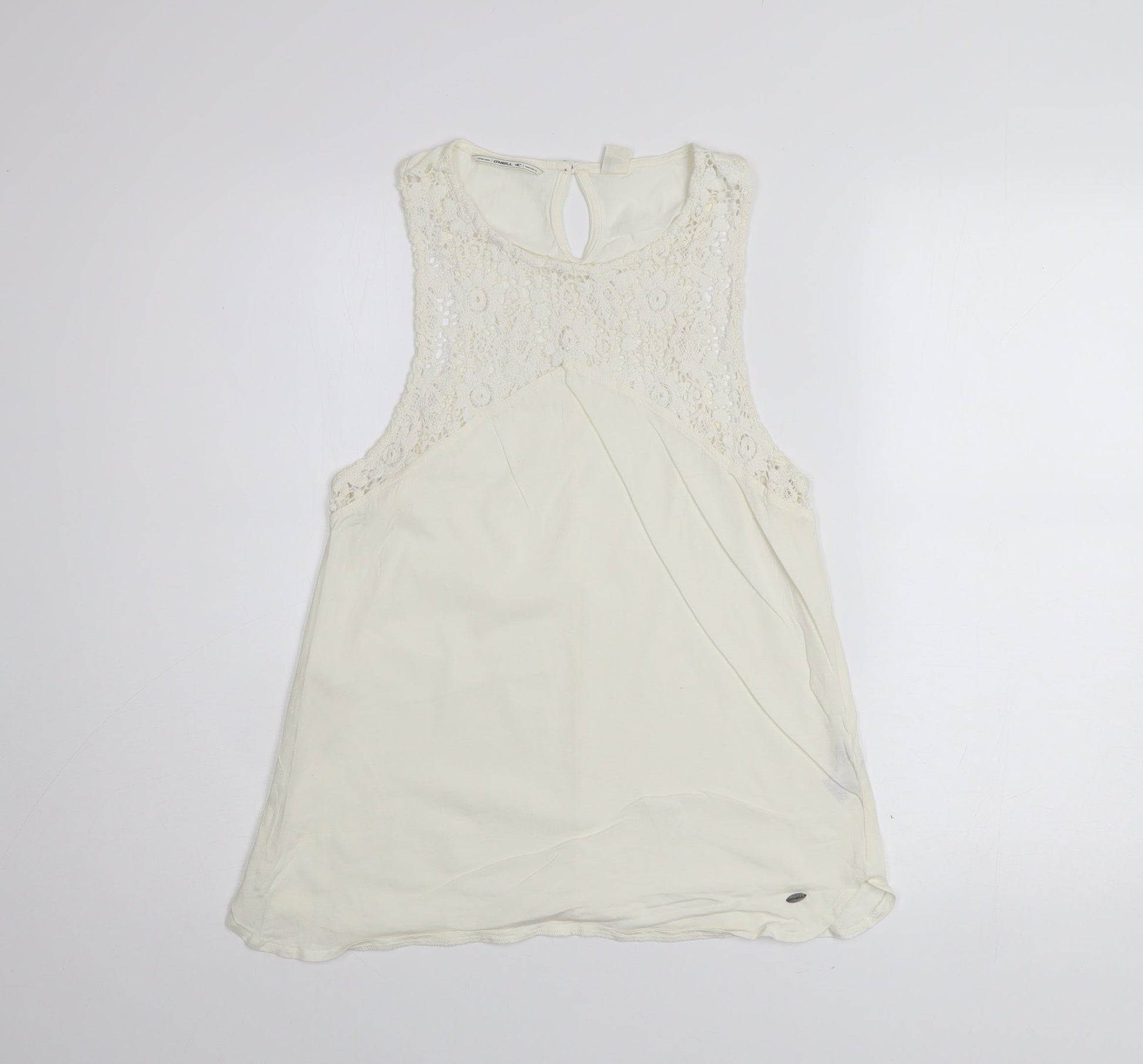 O'Neill Womens Ivory Crochet Cotton Sleeveless Tank Top Size 12