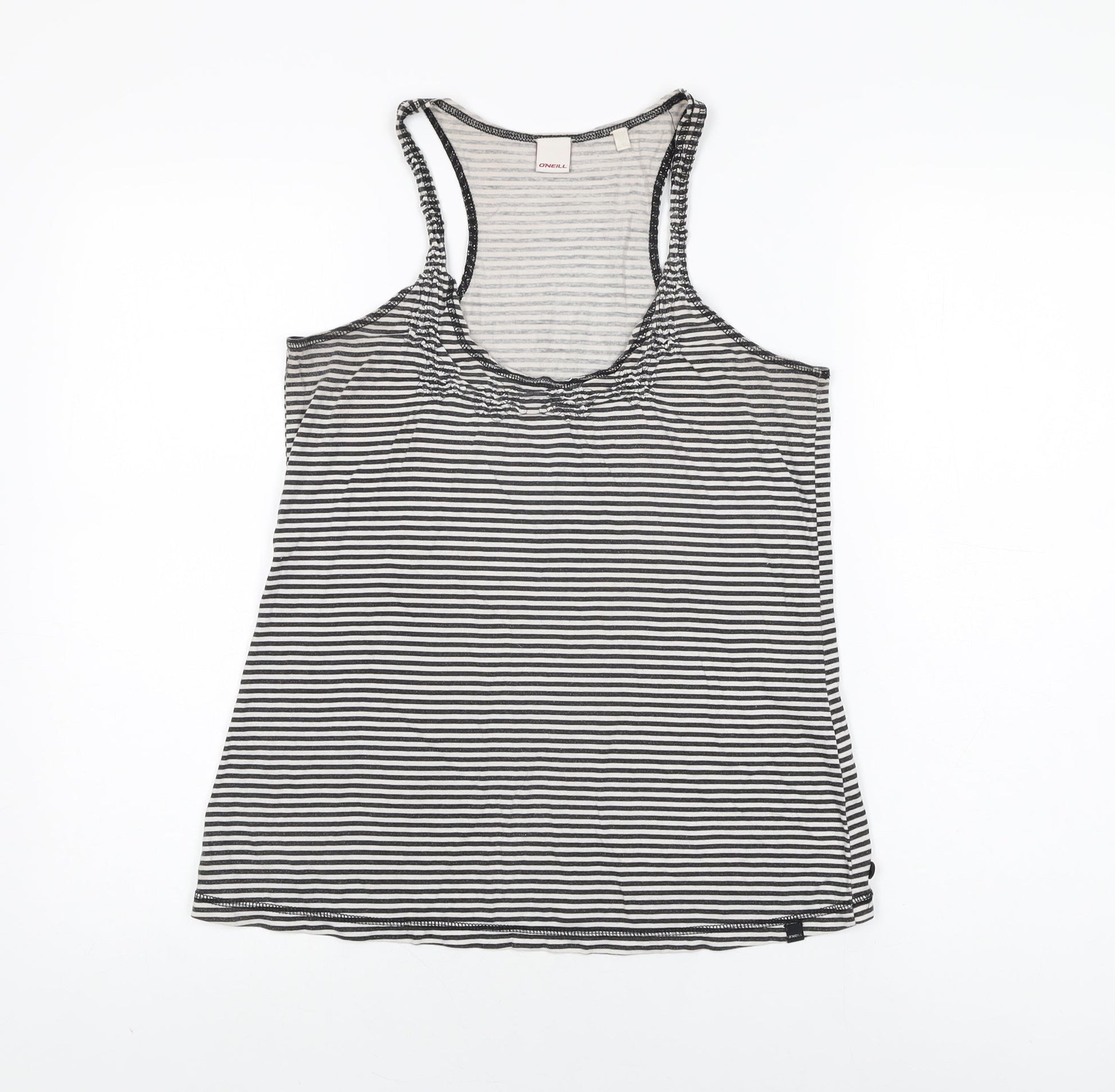 O'Neill Womens White Striped Cotton Basic T-Shirt Size S Scoop Neck