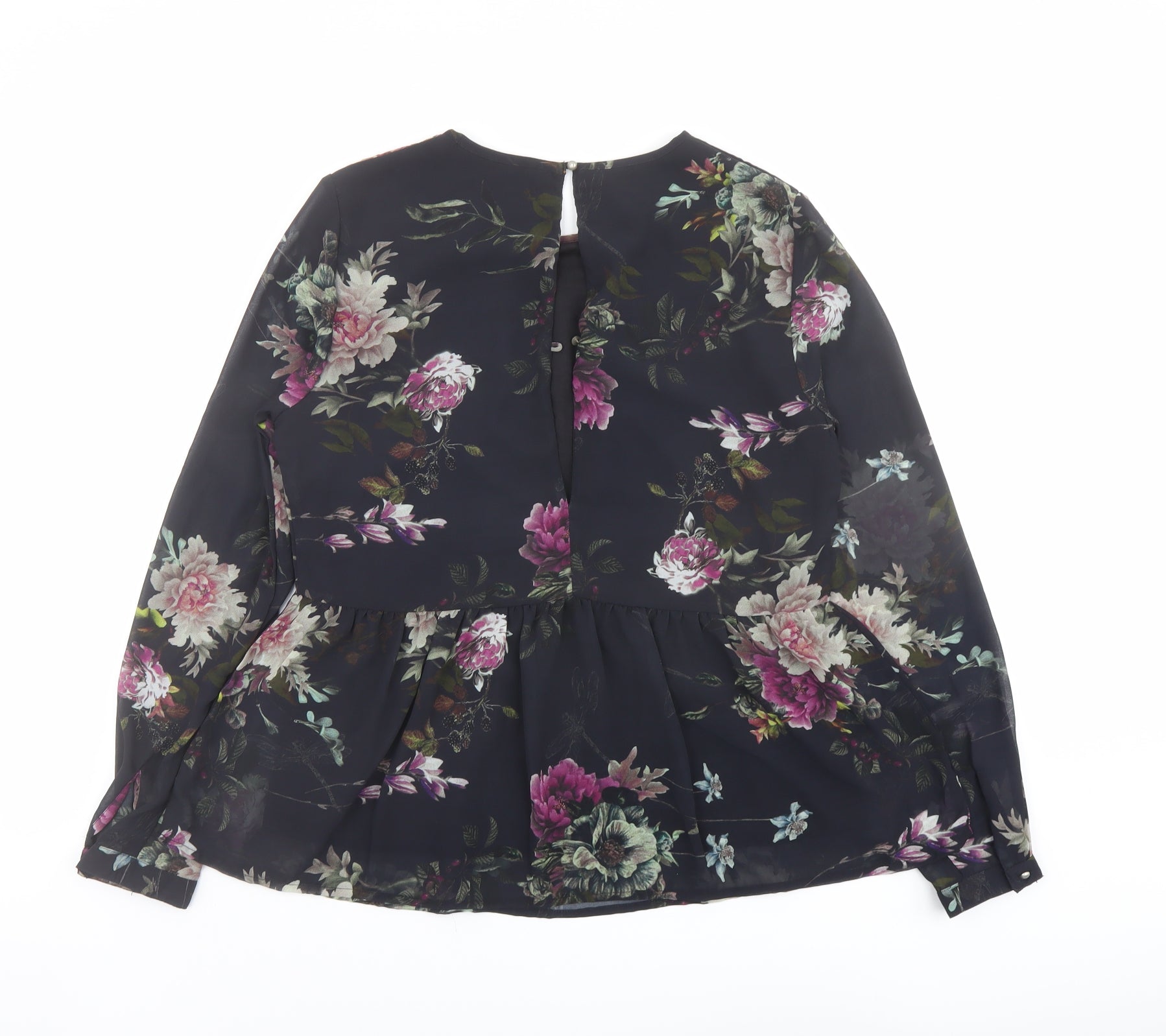 Only Womens Black Floral Polyester Basic Blouse Size 8 Round Neck