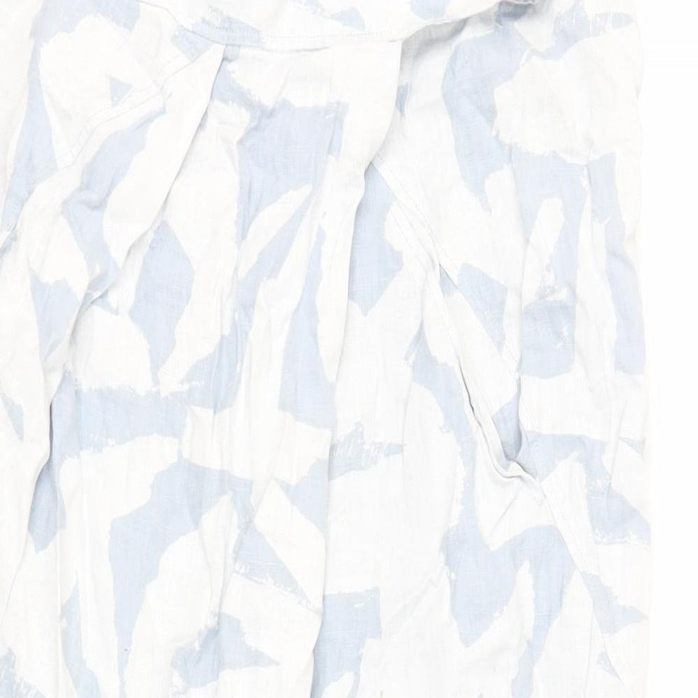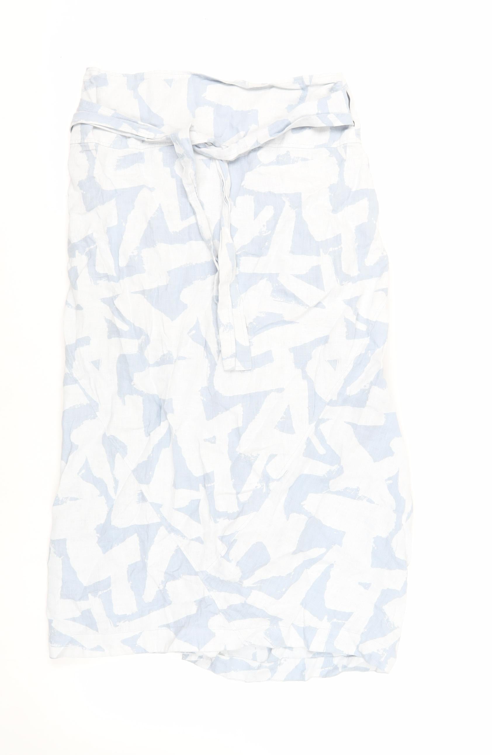 OSKA Womens Blue Geometric Linen Wrap Skirt Size 12 Tie