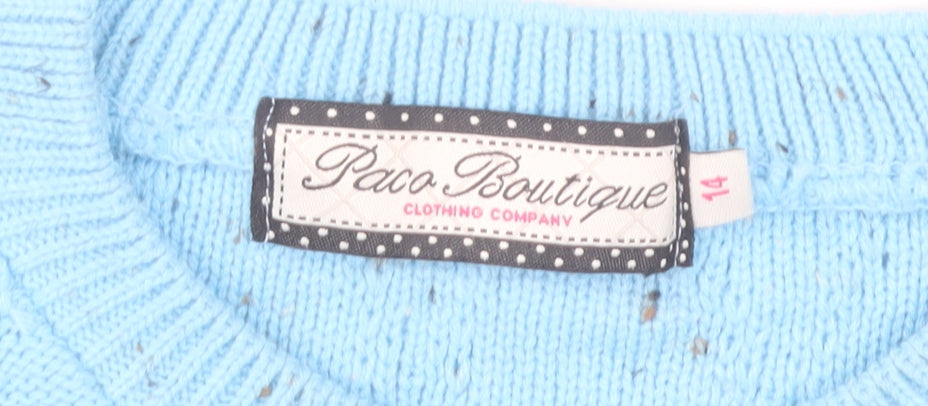Paco Boutique Women Blue Size 14 Cable Knit Crew Neck Jumper