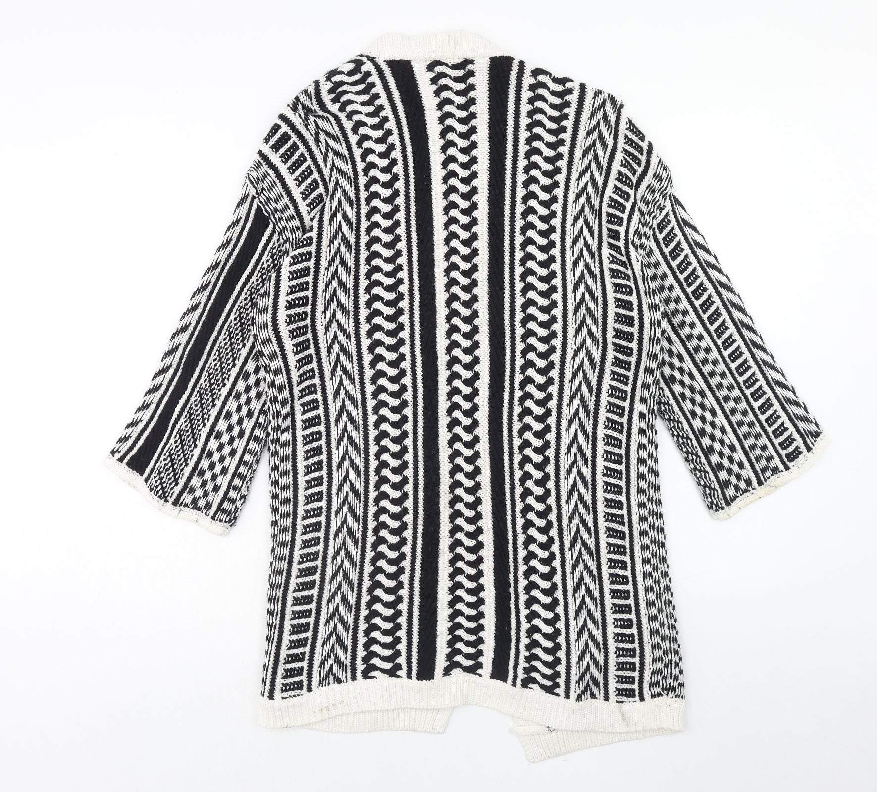 Papaya Womens Black V-Neck Geometric Acrylic Cardigan Jumper Size M