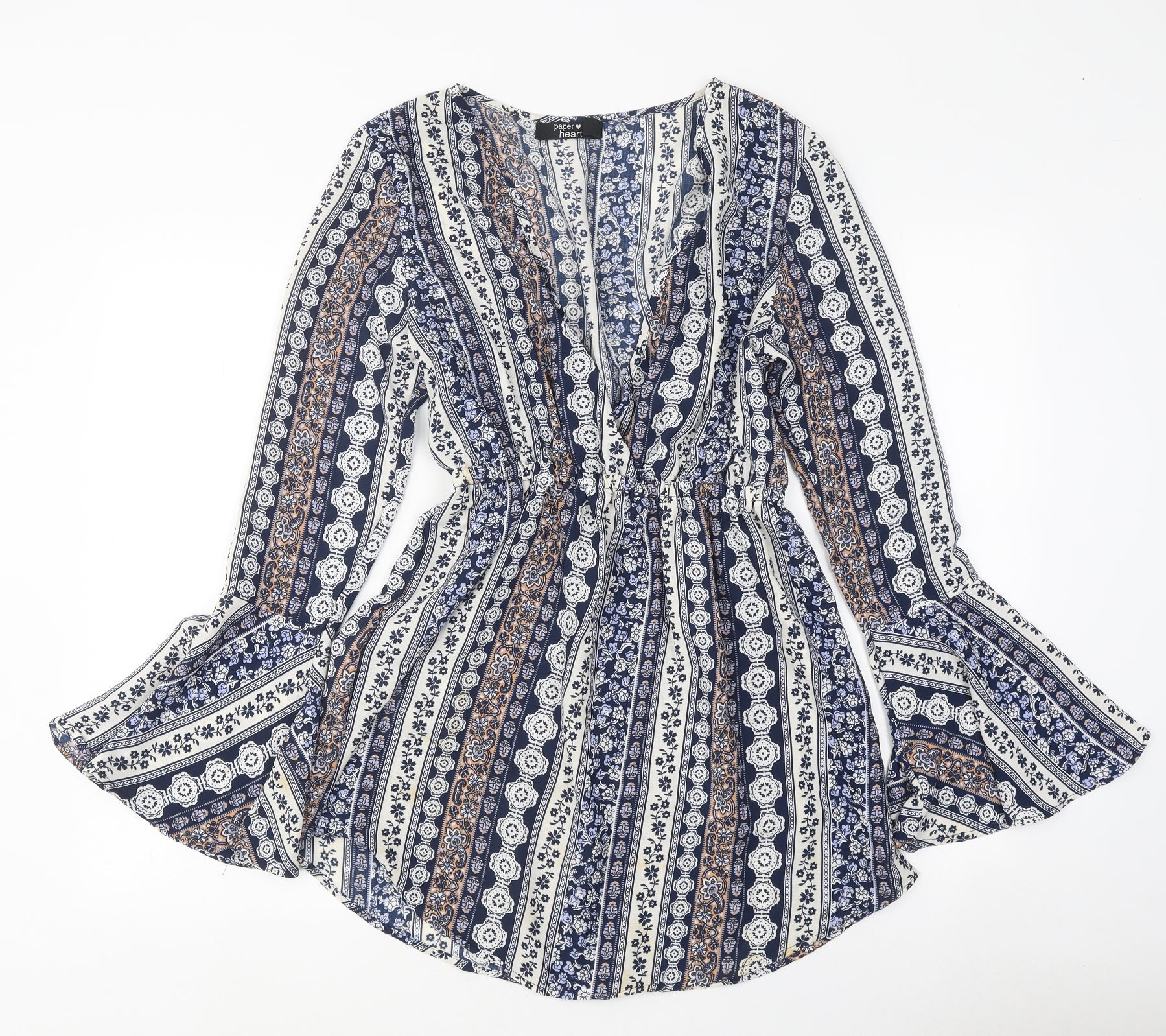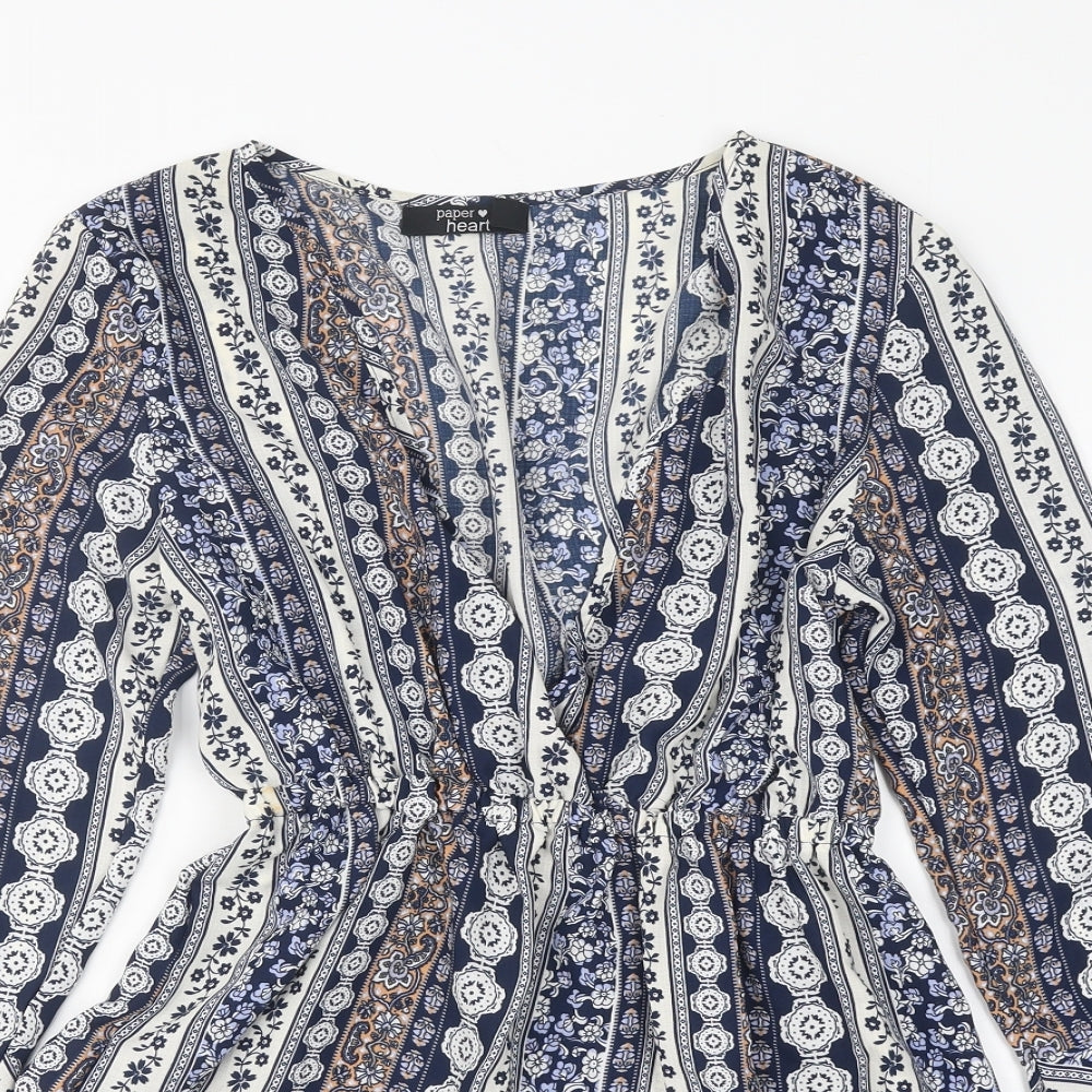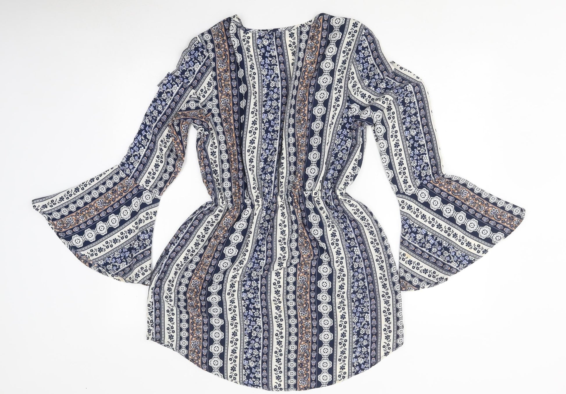 Paper Heart Womens Multicoloured Geometric Polyester Skater Dress Size 6 V-Neck Pullover - Frill