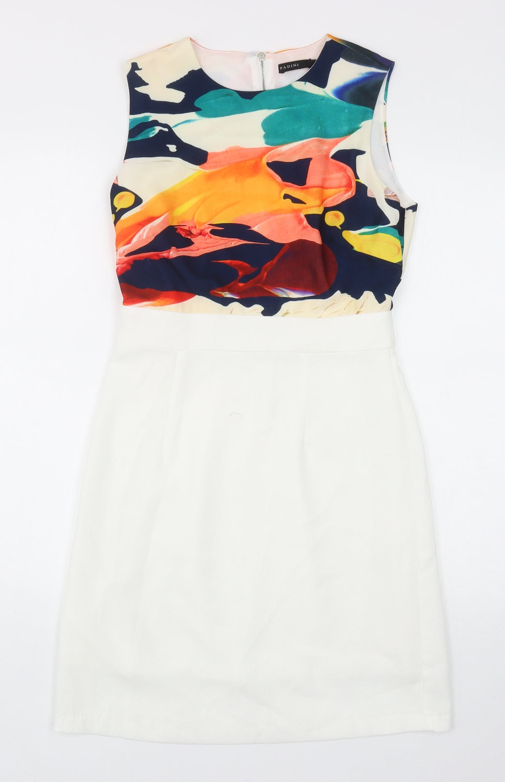 Pardini Womens White Geometric Polyester Shift Size S Boat Neck Zip