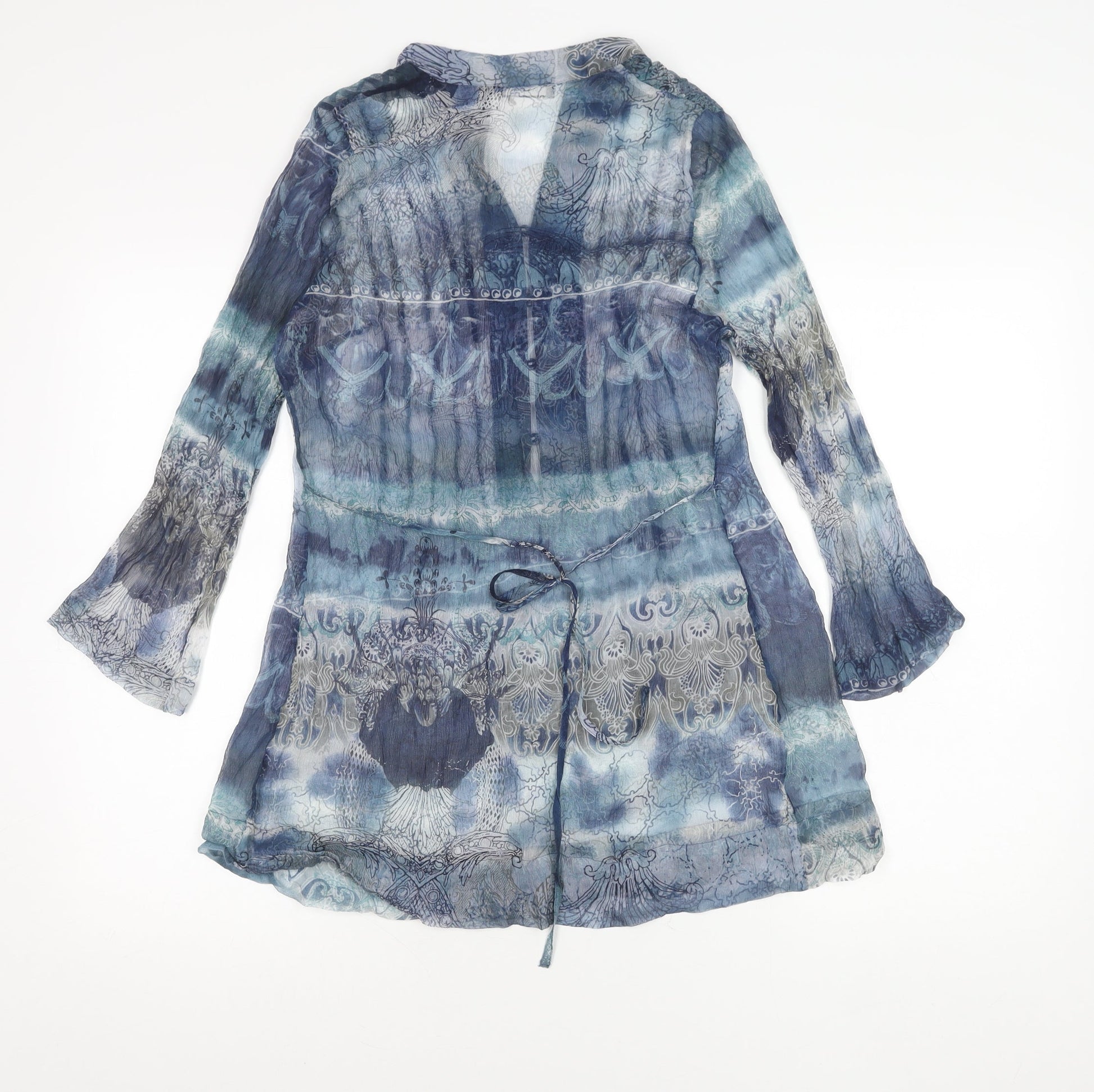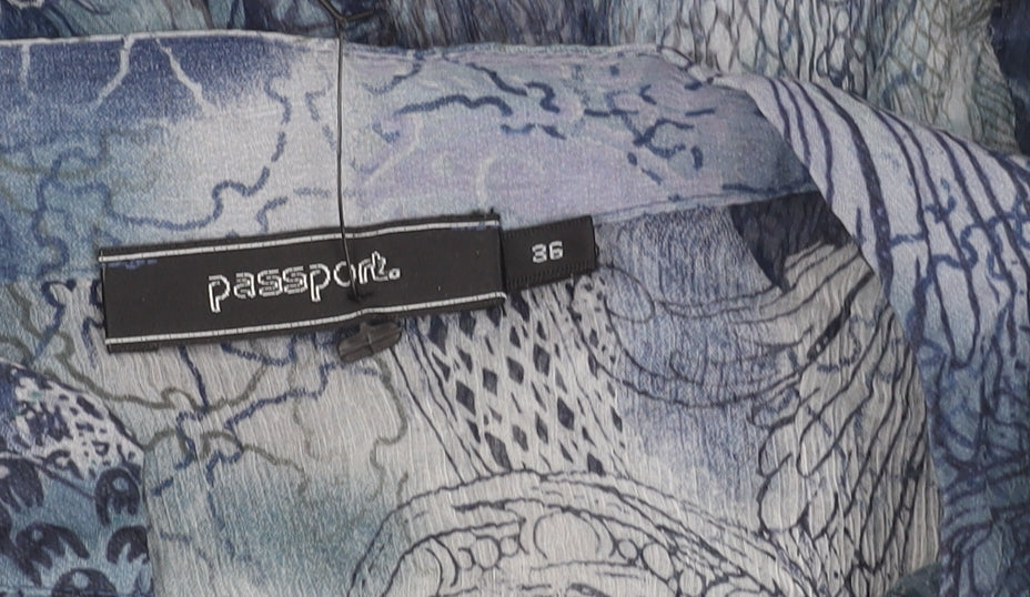 Passport Womens Blue Sheer Tunic Blouse Size 8 Long Sleeve V-Neck