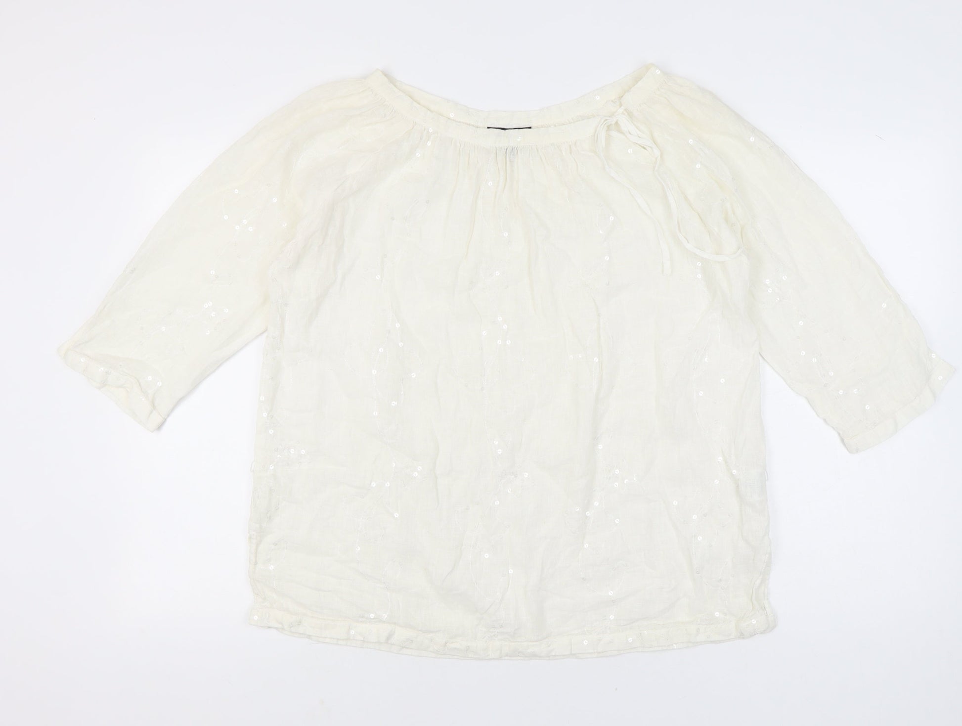 Paul Costelloe Women’s Ivory Linen Sequin Tunic Blouse UK 18