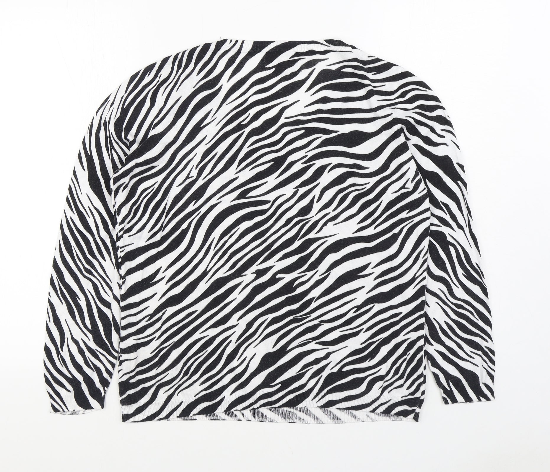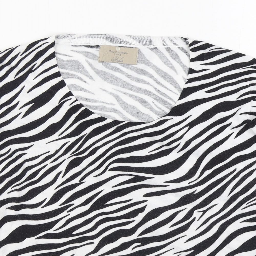Paul Costelloe Womens Black Scoop Neck Animal Print 100% Cotton Pullover Jumper Size L