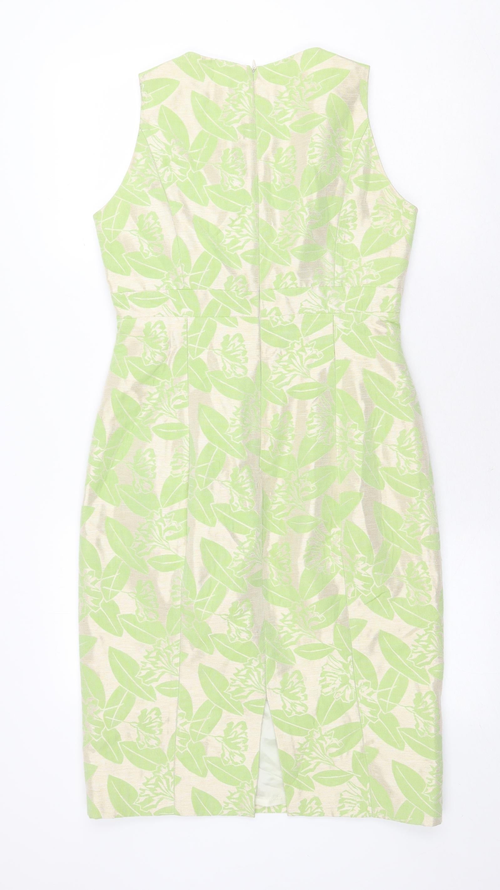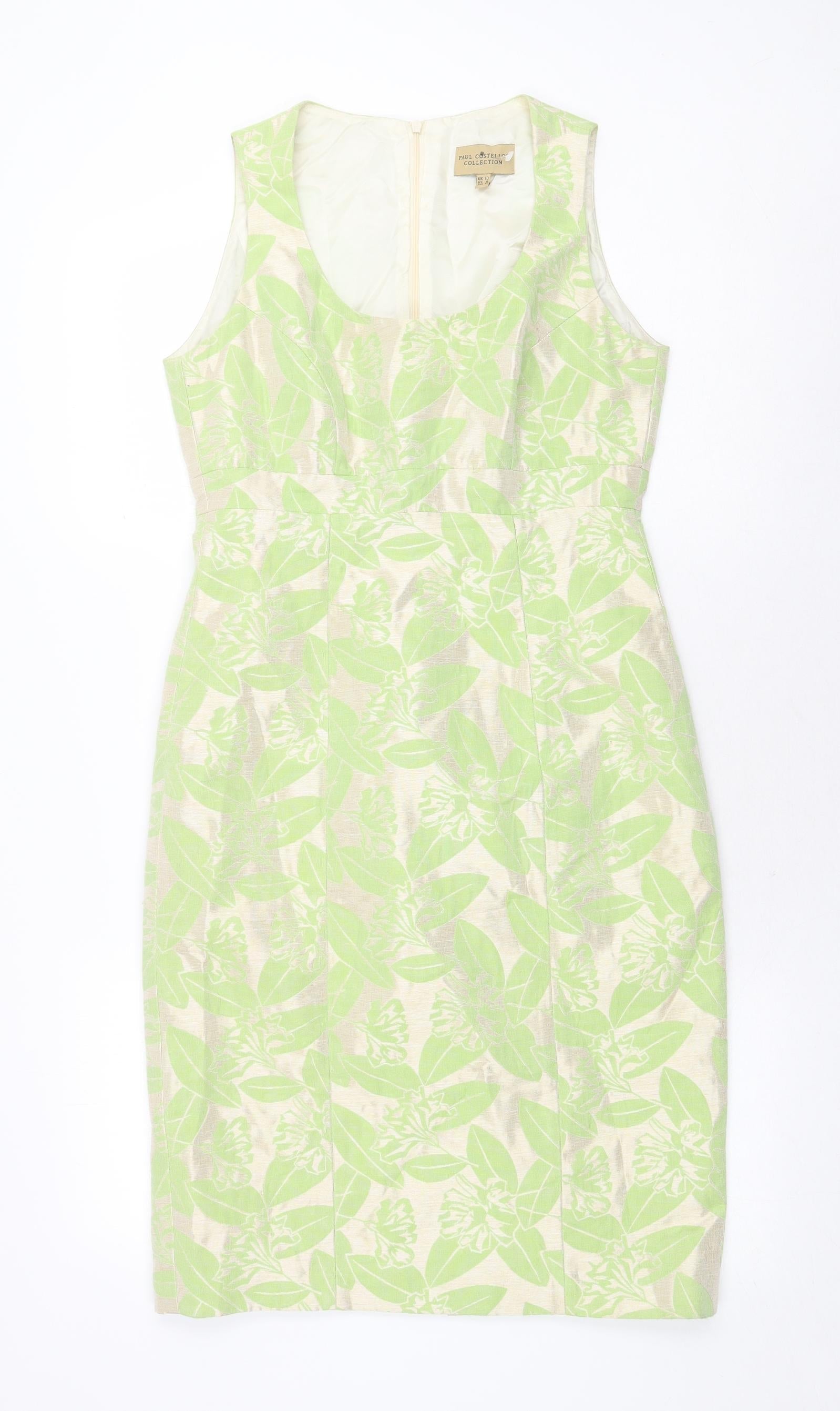 Paul Costelloe Womens Green Floral Polyester A-Line Size 10 Round Neck Zip
