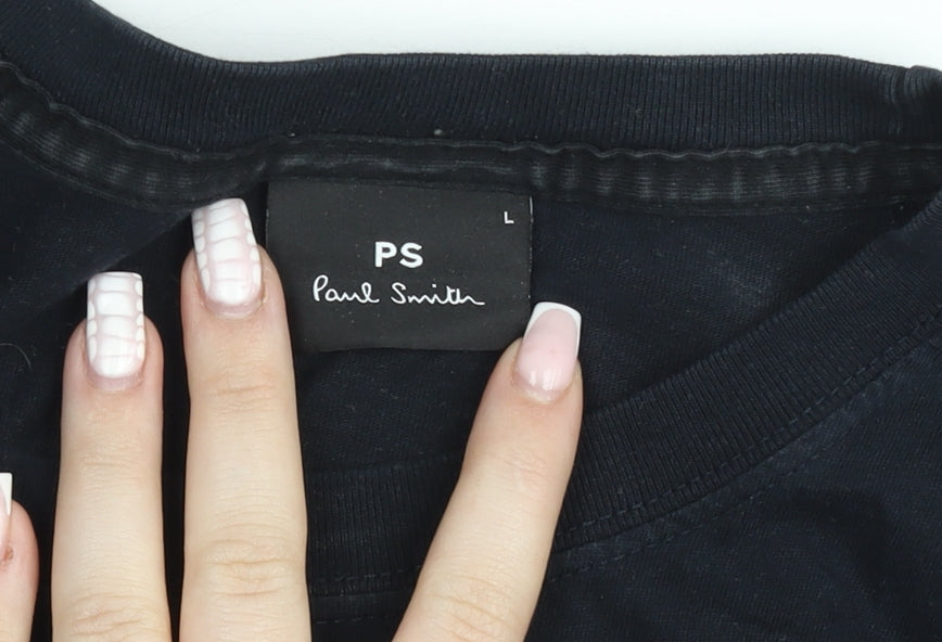 Paul Smith Men's Black Graphic Logo T-Shirt Size L Cotton Crew Neck