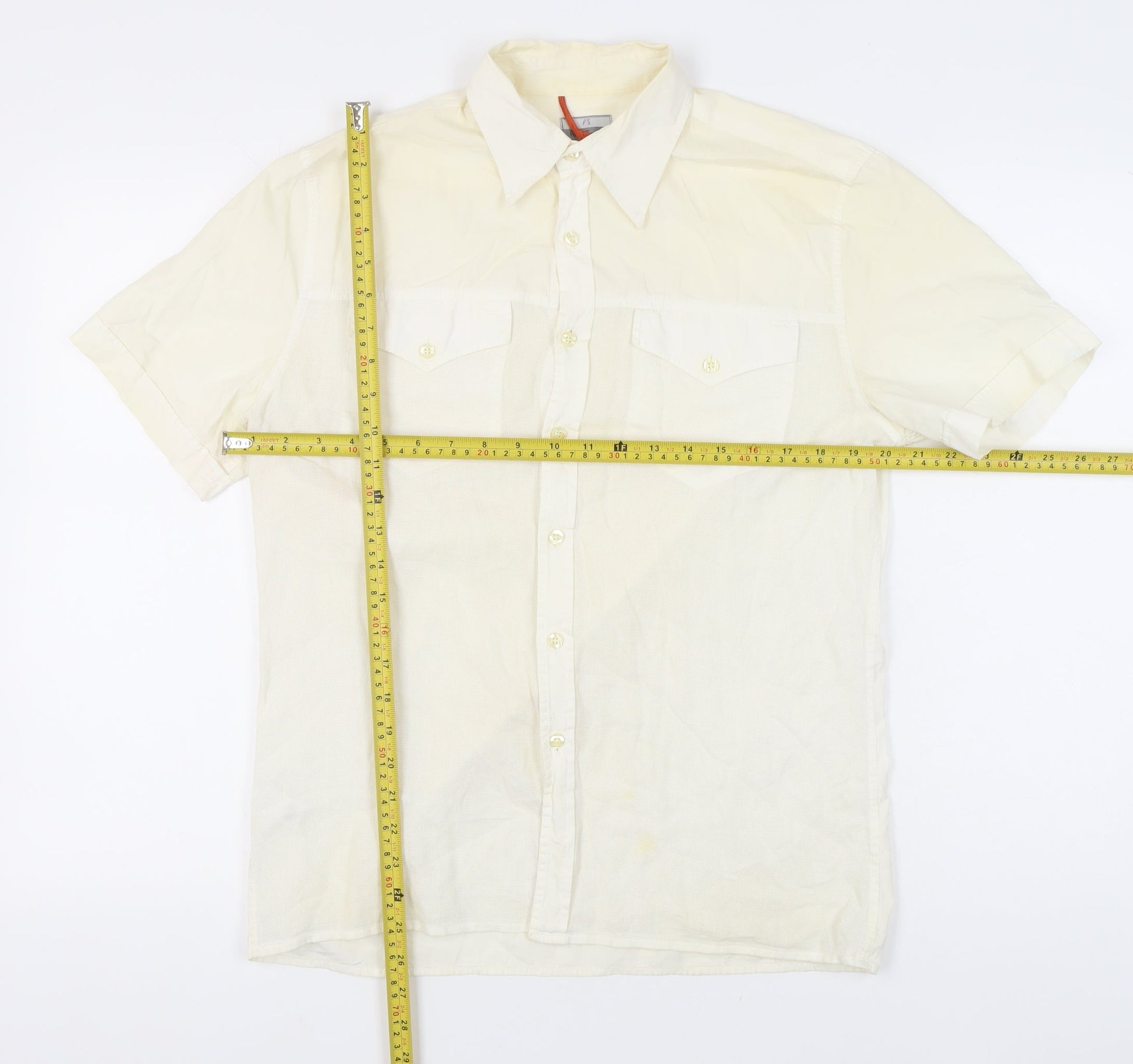 Paul Smith Men's Ivory Short Sleeve Cotton Casual Shirt M