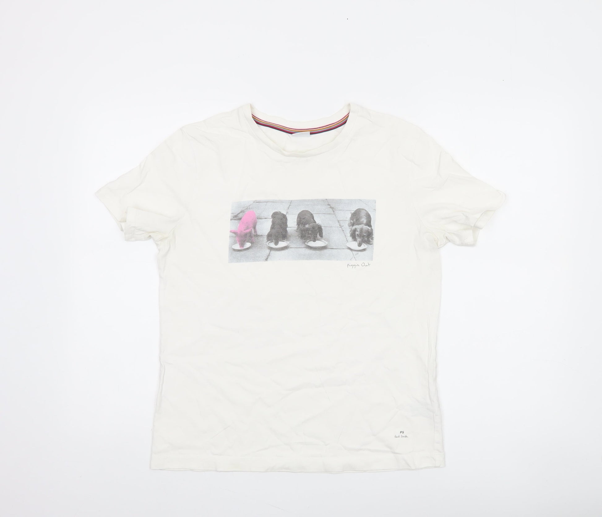 Paul Smith Women's White Organic Cotton Dog Print T-Shirt Size L
