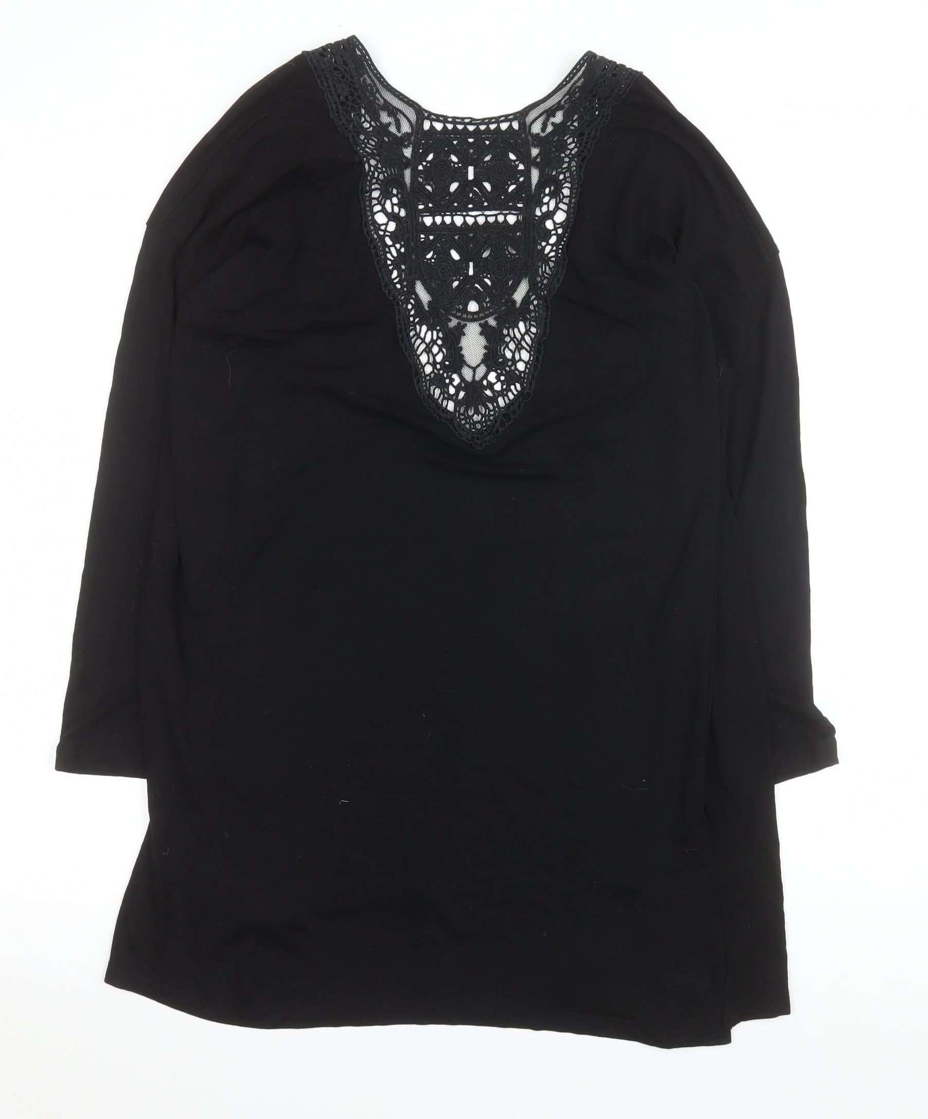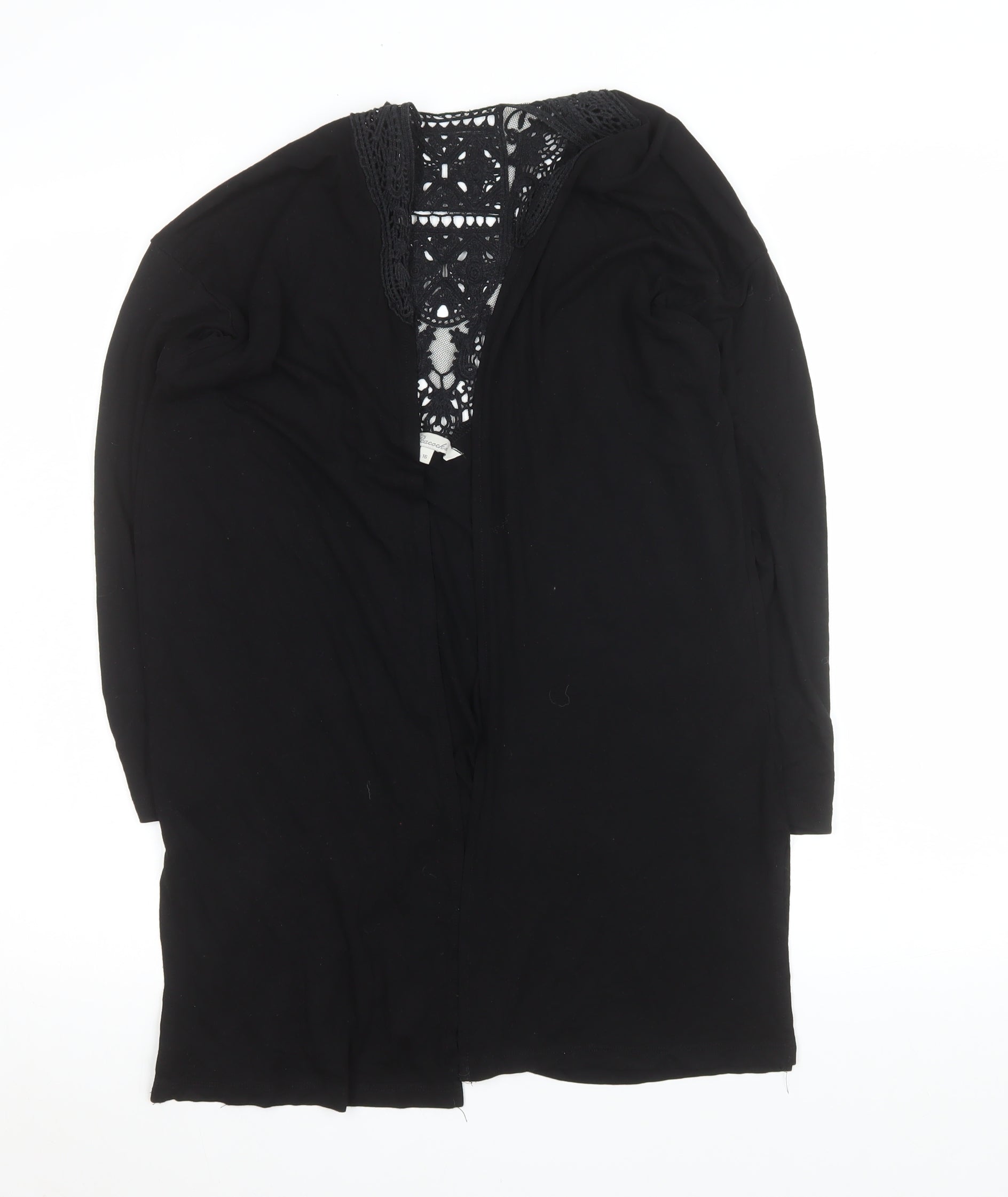 Peacocks Women Black Long Lace Trim Open Coatigan Size 16