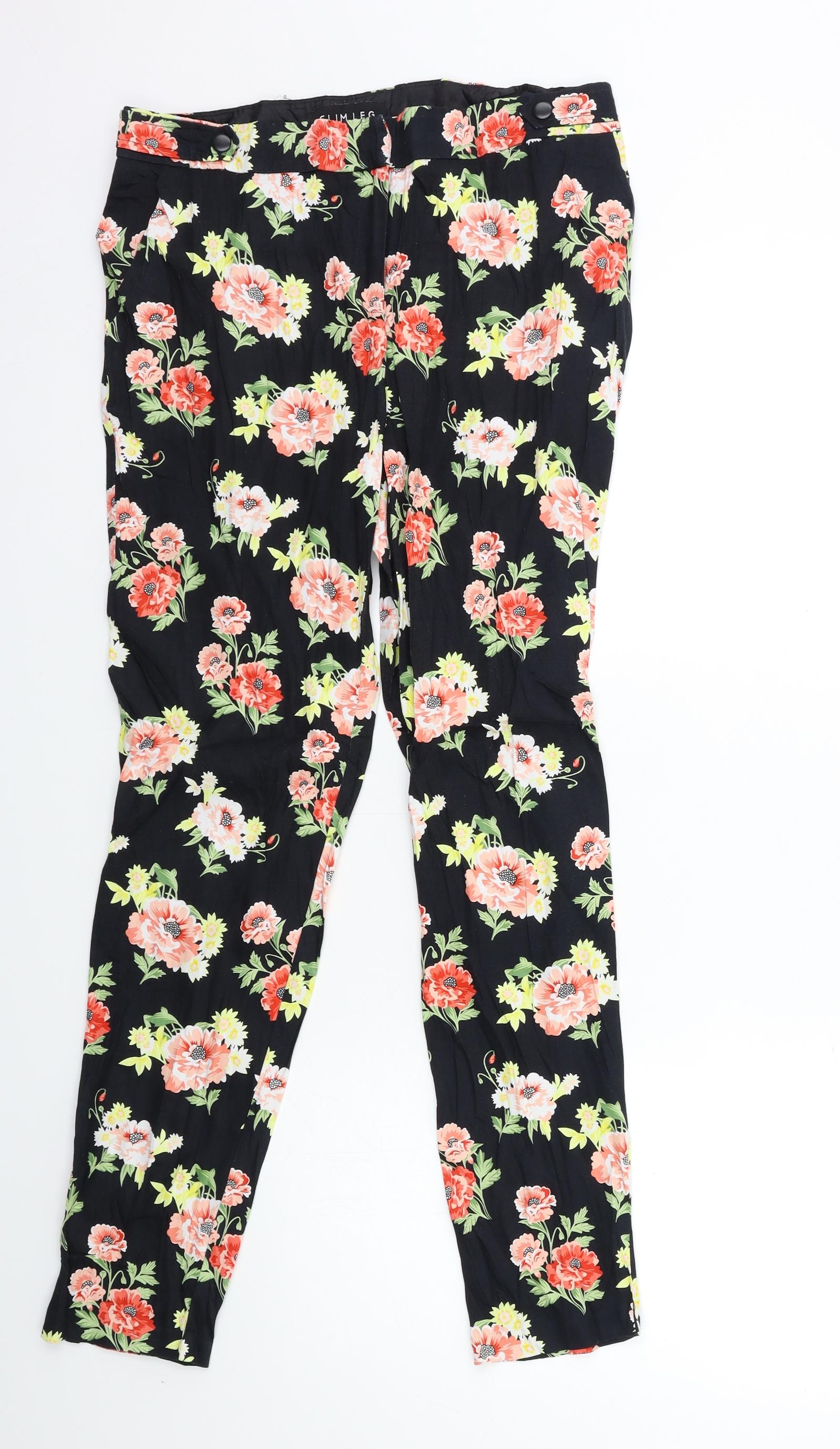 Peacocks Womens Black Floral Trousers Size 10 L29 in
