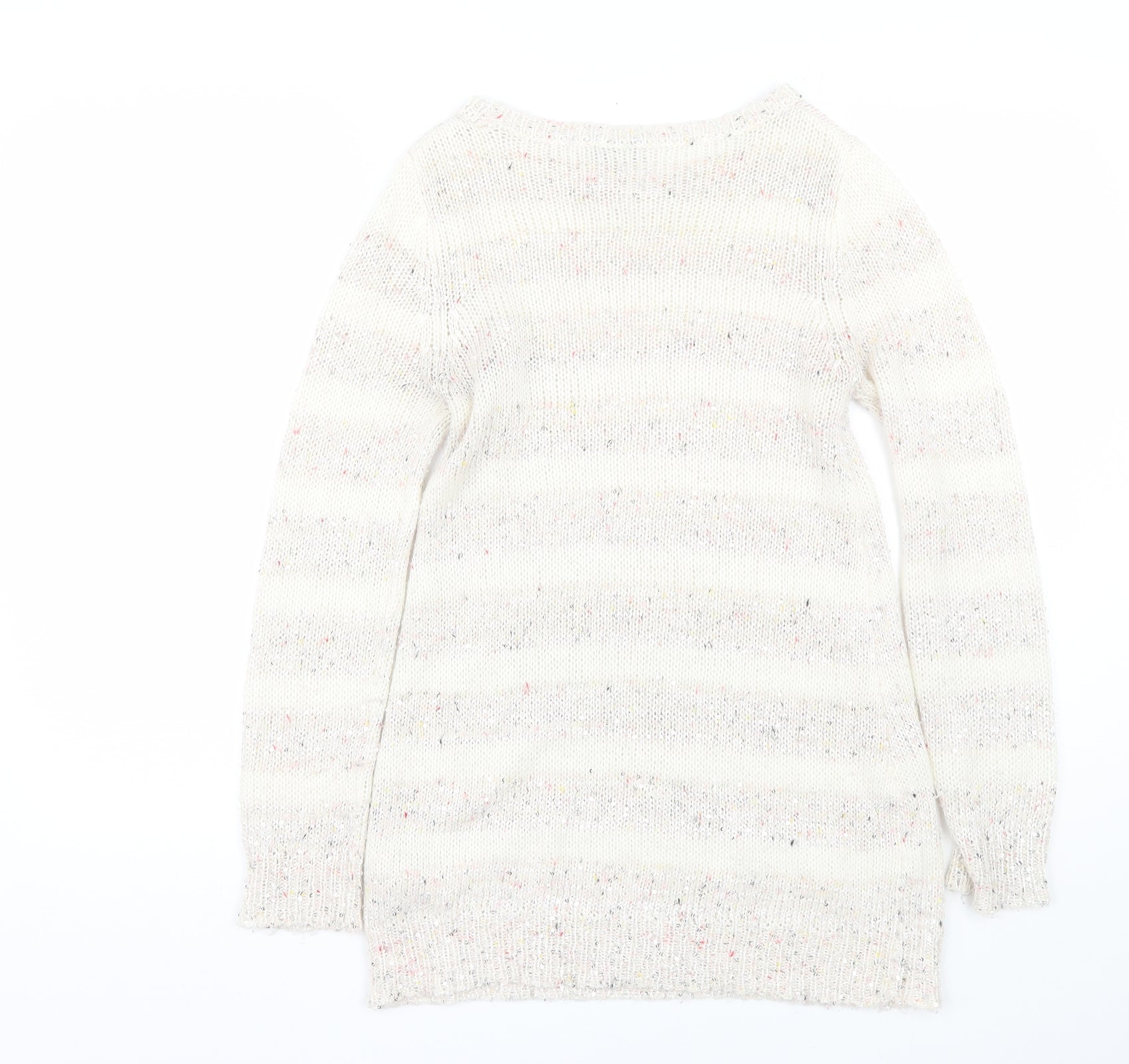 Peacocks Womens White Striped Pullover Jumper Size 10
