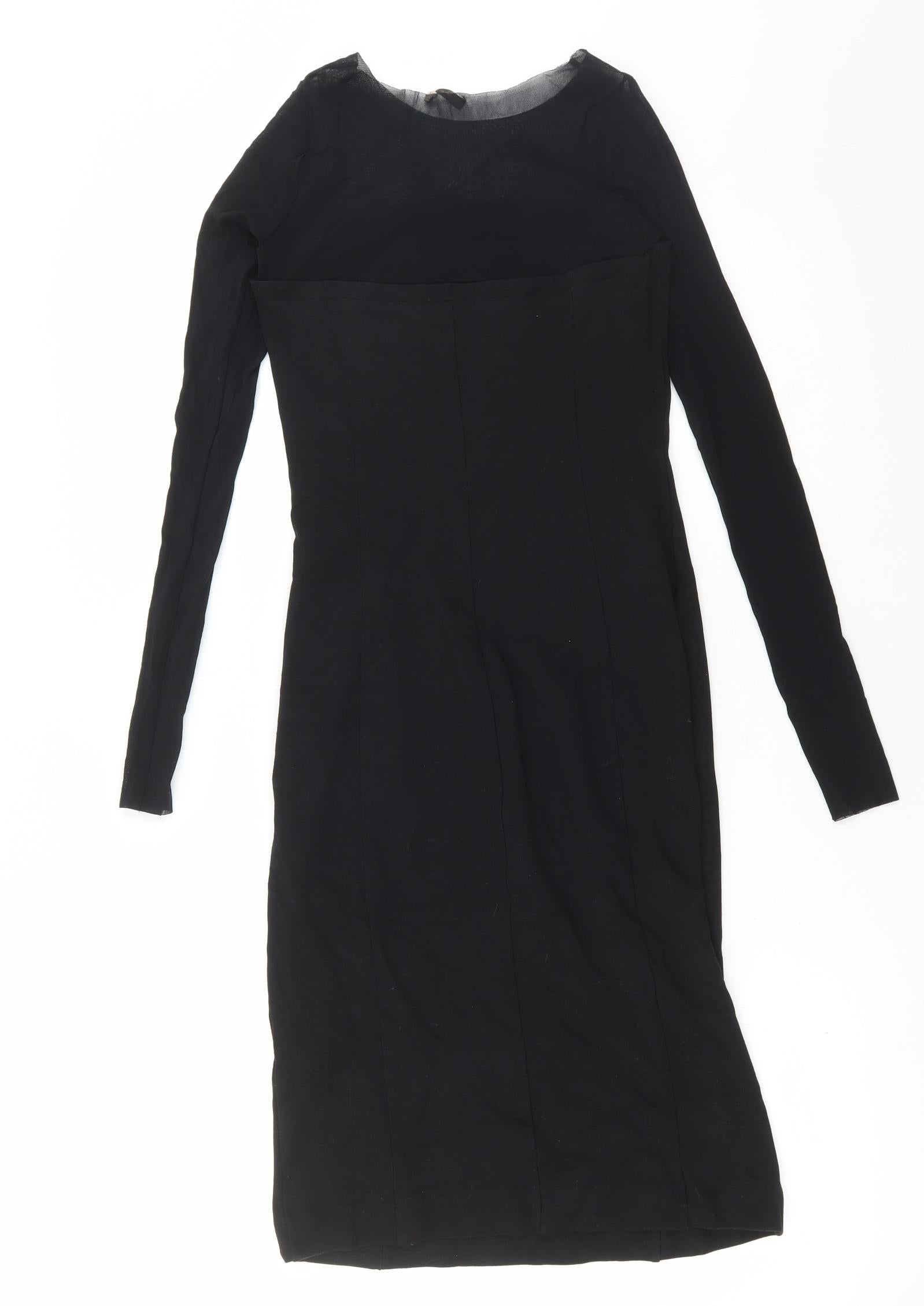 Penny Black Womens Black Viscose Bodycon Size S Round Neck Zip - Mesh sleeves