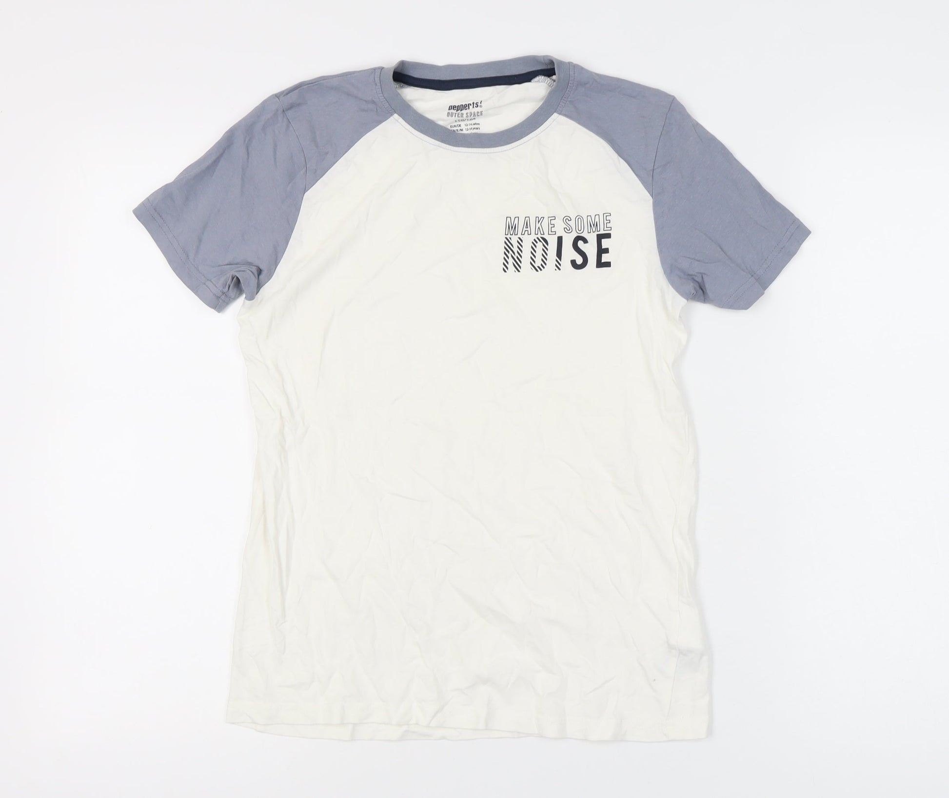 Pepperts Boys White Blue Graphic Print Cotton T-Shirt 13-14 Years