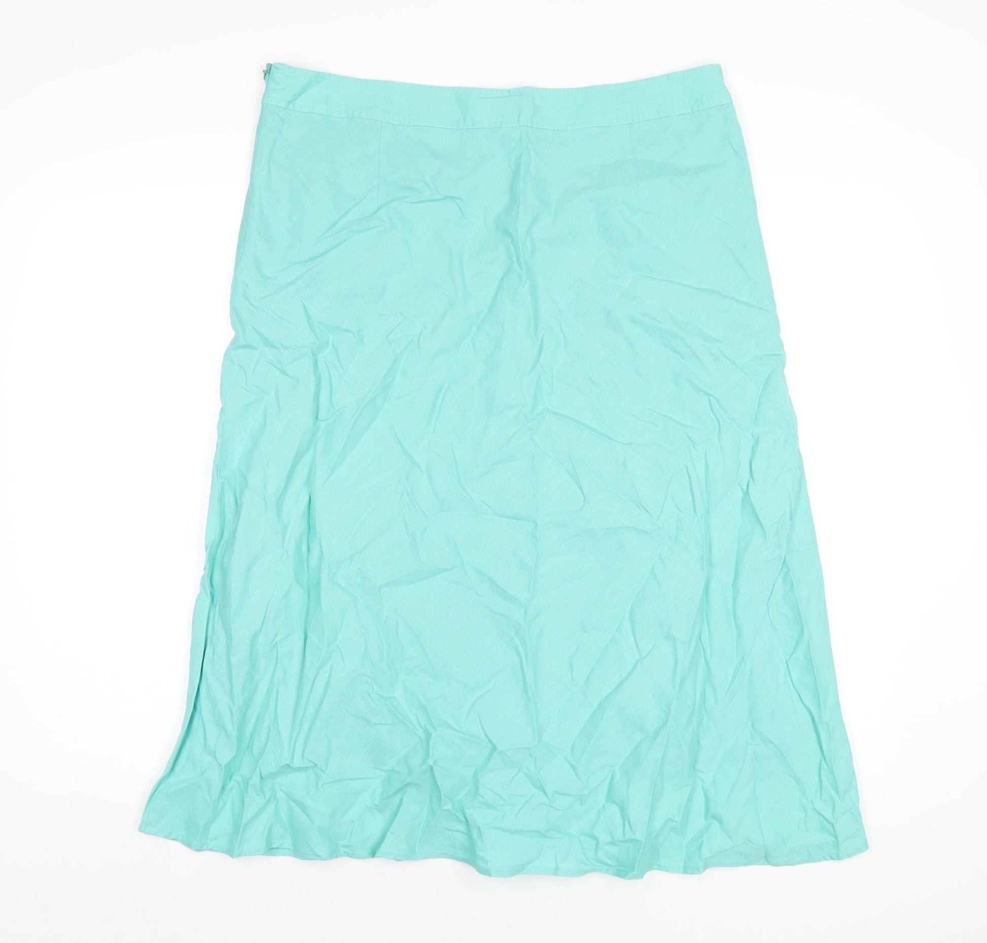 Peter Hahn Womens Green Linen A-Line Skirt Size 16 Zip