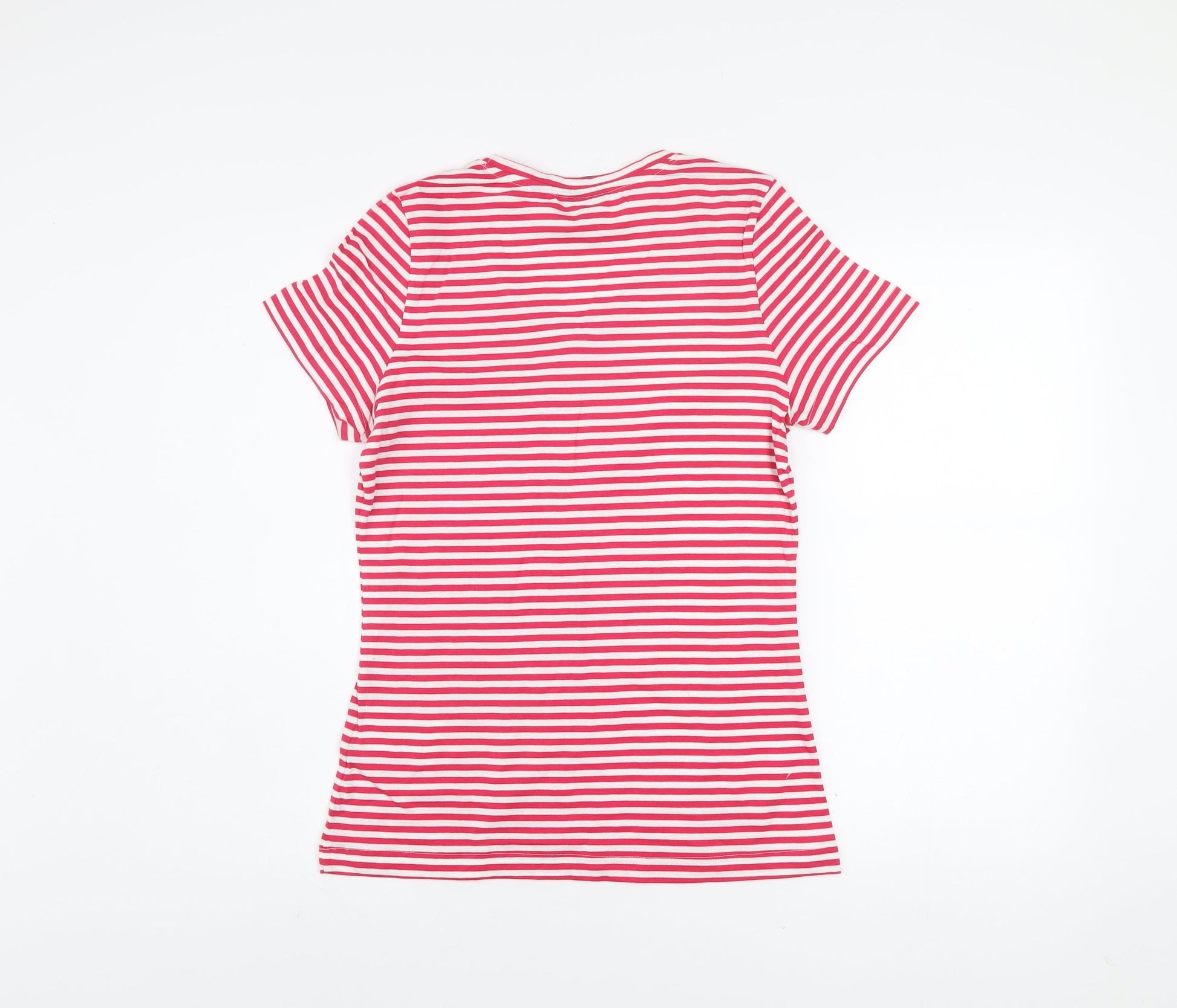 Peter Storm Women Red Striped Cotton V-Neck T-Shirt Size 10