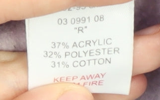 - Material Breakdown: 37% Acrylic 32% Polyester 31% Cotton