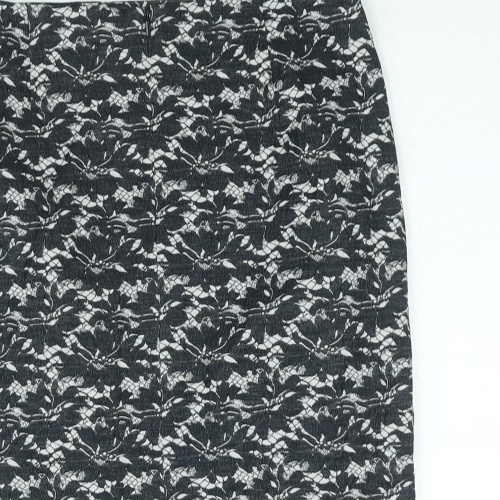 Phase Eight Womens Black Geometric Polyester Straight & Pencil Skirt Size 8 Zip