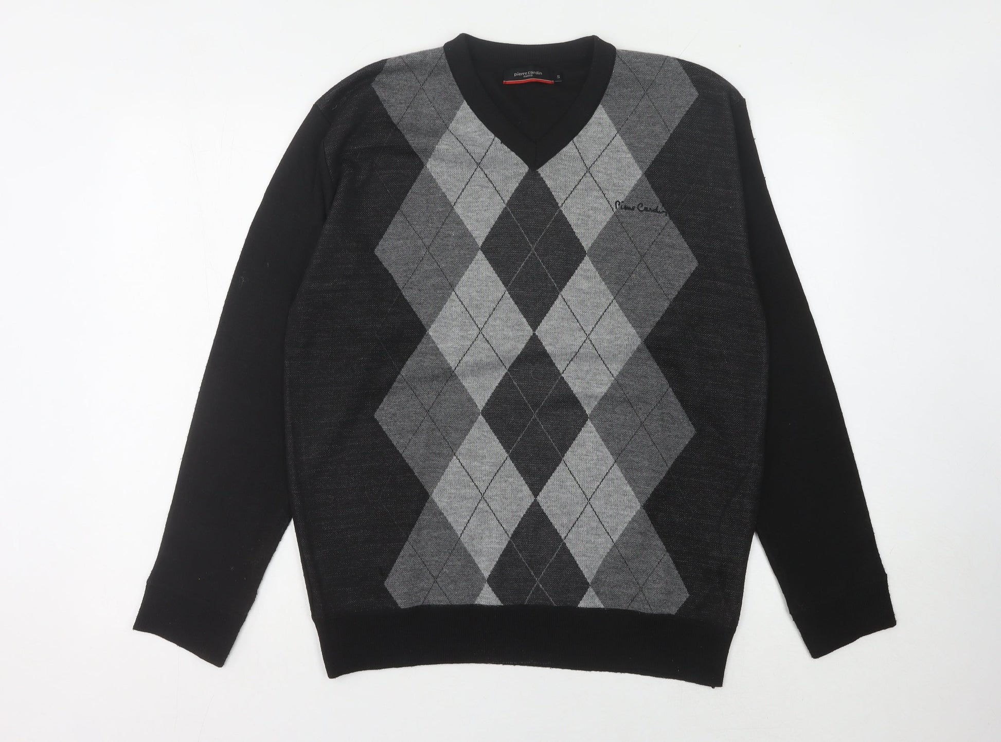 Pierre Cardin Men's Black Argyle Pullover Jumper S