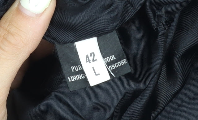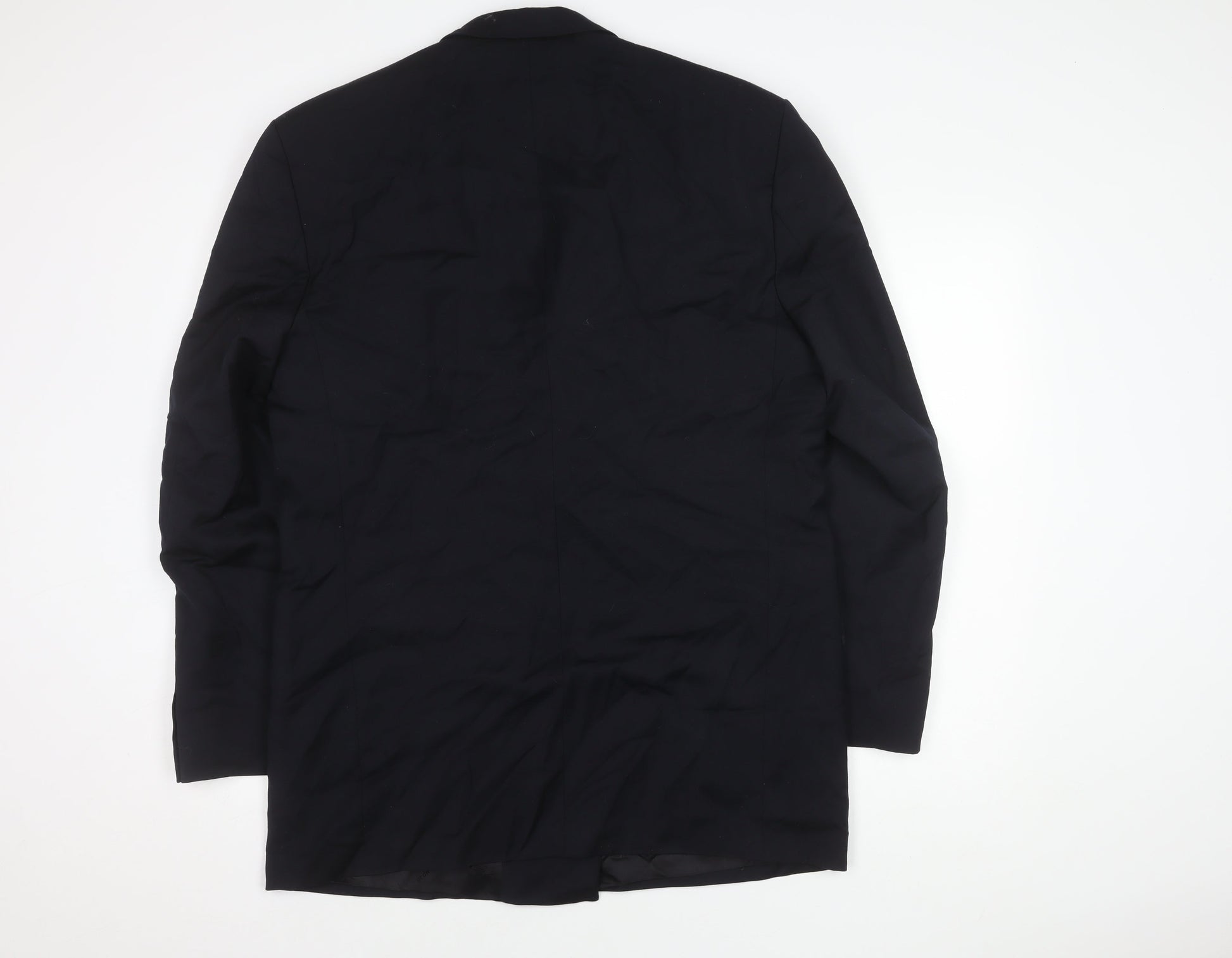 Pierre Cardin Men's Black Long Wool Blazer 42L Double-Breasted